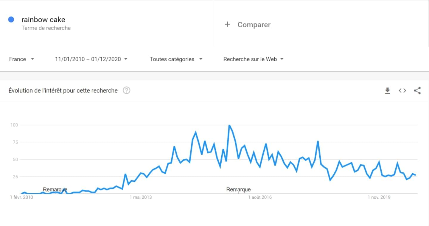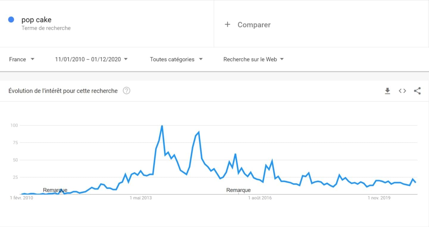 Regardez la tendance de recherches des pop cakes sur Google ces dix dernières années :