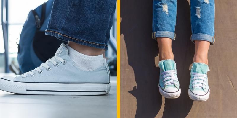 Voilà une mode bien cringe adoptée par les lycéens des années 2000-2010 qui se croyaient stylés. Pour être à la mode, il ne fallait SURTOUT PAS que quiconque puisse voir tes chaussettes ou le noeud de tes lacets. Alors, les ados portaient des socquettes minuscules qui se perdaient dans les chaussures et cachaient le noeud des lacets de Converse derrière la languette. C'était débile et arbitraire mais c'était comme ça, un lacet apparent pouvait ruiner ta réputation.