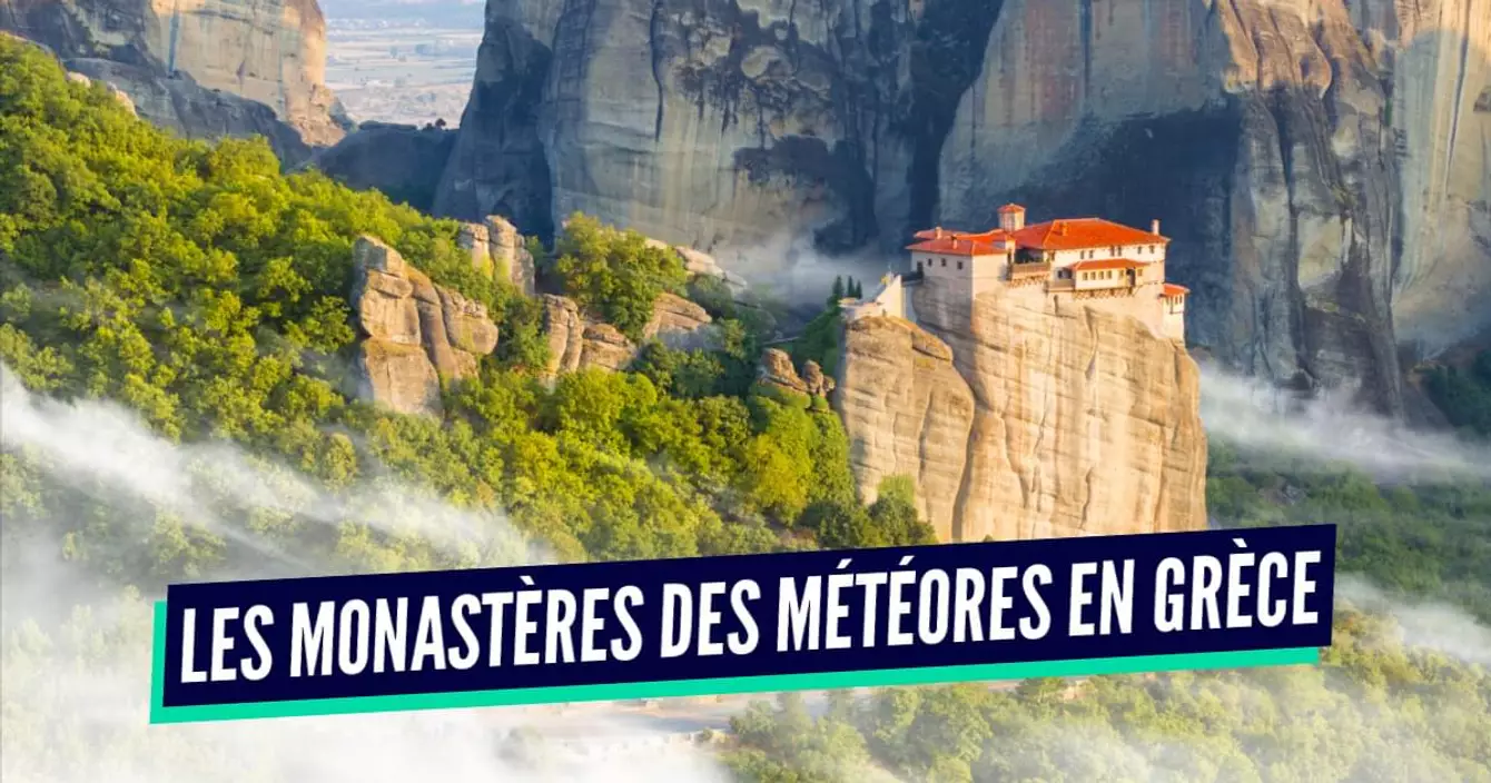 Un ensemble de monastères perchés sur différentes masses rocheuses qui n'étaient jadis accessibles que par un système de paniers suspendus à la montagne (depuis, des escaliers ont été creusés dans la roche). Situé au Nord de la Grèce, cet endroit pittoresque fut fondé, d'après la légende, par Saint Athanase, qui fut porté par un aigle, tel Gandalf dans Le Seigneur des Anneaux, jusqu'au sommet de la montagne. Inutile de dire que depuis, les aigles n'assurent plus le transport.