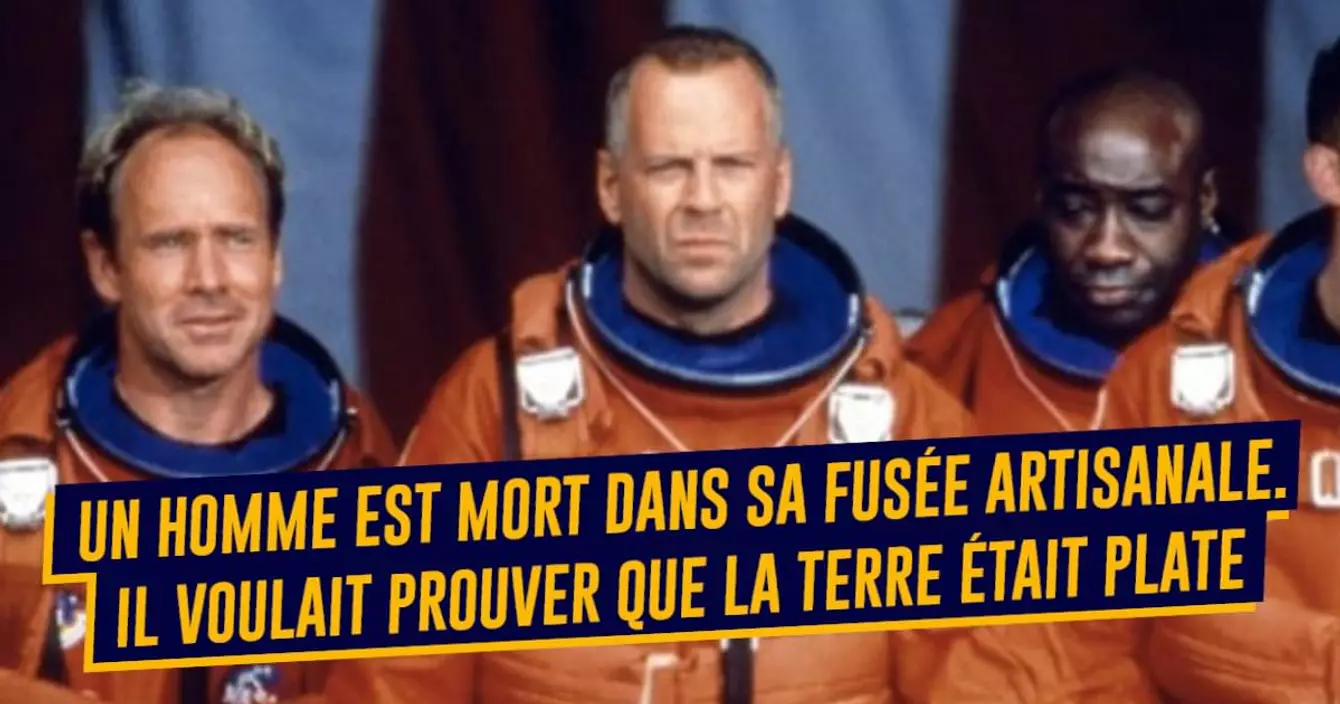 VOILA, ça c'est ce qu'on peut appeler une mort bien conne. Déjà, parce que Mike Hughes, le Californien de 64 ans, a façonné lui-même l'outil bancal de sa disparition : une fusée à vapeur avec laquelle il espérait atteindre les 1525 mètres d'altitude. Mais le plus con dans tout ça, c'est que ce bon vieux Mike voulait s'élever dans les airs pour apporter au monde entier les preuves que la Terre était plate. Au final, il est monté très haut dans le ciel, mais pas de la manière qu'il imaginait.
