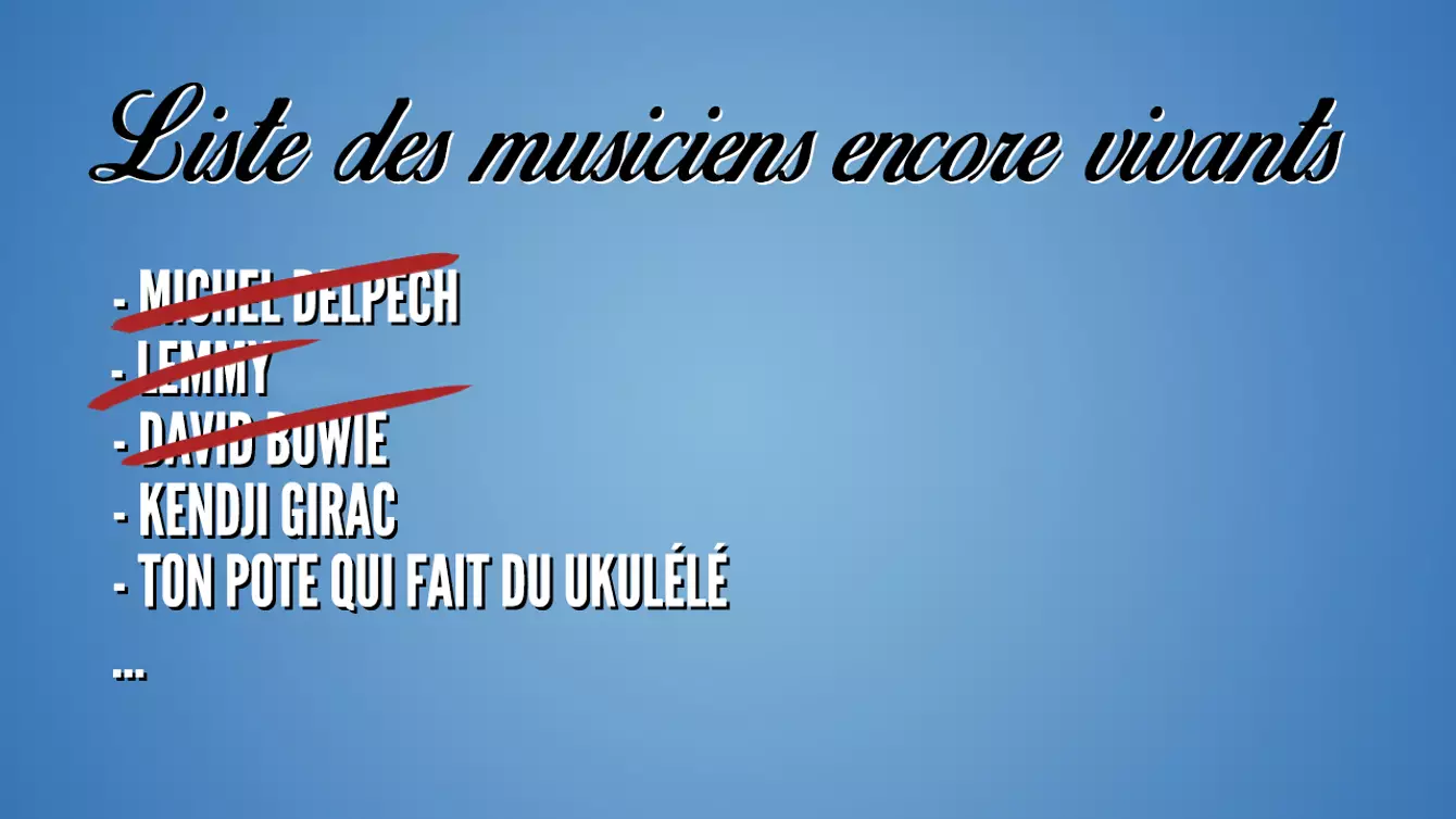 On se demandait si 2016 allait être aussi pourri que 2015 et on est plutôt bien parti. Après Lemmy et Delpech le monde de la musique vient de perdre Bowie. A ce rythme là on se demande bien qui il va nous rester en 2017. Et a priori, pas grand monde.