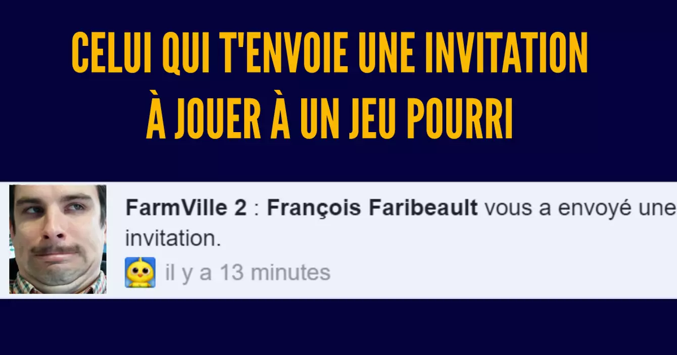 On ne savait pas qu'il existait mais il est tout de même présent dans notre liste d'amis. Tu sais c'est ce type que tu as croisé dans une soirée et qui t'avait ajouté le lendemain pour te parler de ce projet de construction d'avion en papier dont il t'avait fait part pendant 3 heures la veille. Quelqu'un de charmant.