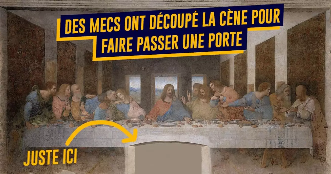 Quand on voit ce qui lui est arrivé, on se demande comment cette fresque a pu parvenir jusqu'à nous. En 1652 on a percé une porte dans le mur et PAF ! on a amputé Jésus de ses pieds. Ensuite, les soldats de notre cher Napoléon se sont servis de la pièce où se trouve la Cène comme d'une étable. Autant vous dire qu'une peinture Renaissance ne fait pas bon ménage avec les chevaux. Pour finir, le bâtiment qui abrite la peinture s'est pris une bombe en pleine Seconde Guerre Mondiale. Mais bon, elle est toujours là.