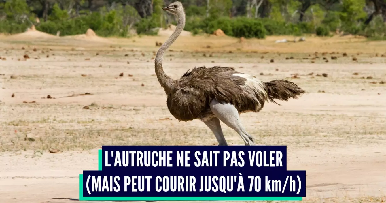 Une grosse feignasse qui est incapable de voler. Pourtant elle a de grandes ailes. Le truc, c'est que l'autruche est grosse. Jusqu'à 200 kg. C'est le plus gros oiseau du monde. Et si elle ne vole donc pas, elle court. Très vite. En moyenne à 70km/h et en pointe jusqu'à 97 km/h.