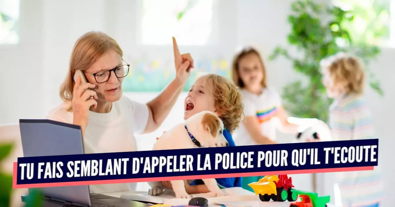 Parce que si c’est que vous qui menacez, ça ne sert à rien, il s’en tamponne complètement. Alors vous faites semblant d’appeler la police, le père Noël, la maitresse d’école, Philippe Etchebest ou tout autre personne qui pourrait avoir un semblant d’autorité pour faire obéir votre môme. C’est pas gagné.