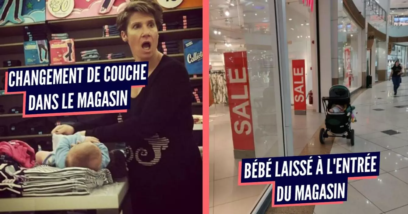 Ces parents qui laissent leur bébé dans la poussette, seul, en plein milieu de l'entrée du magasin