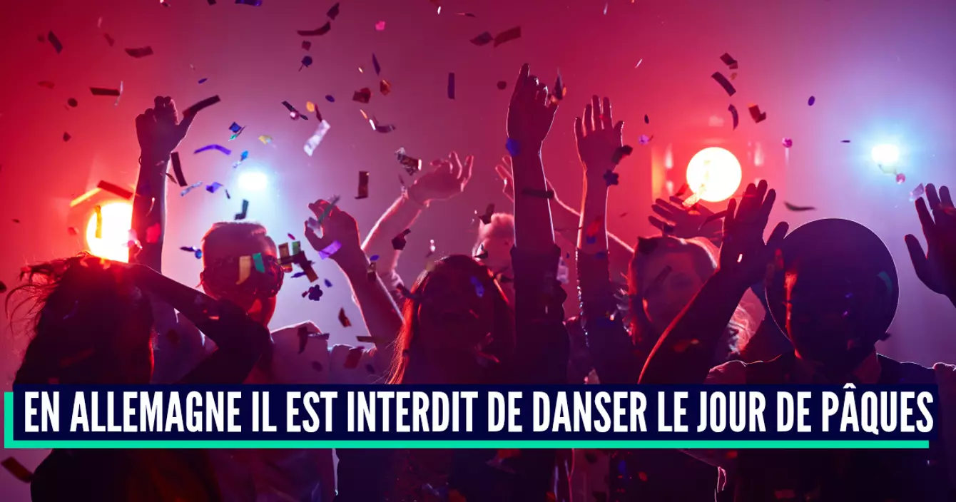 Surprenant n'est-ce pas ? C'est pourtant bien vrai. Bon alors rassurez-vous, cette interdiction n'est valable que pendant le week-end de Pâques. La faute à la loi « Tanzverbot » qui impose de respecter le jeudi saint, jour de recueillement où sont interdites toutes manifestations d'amusement. Bref va pas en Allemagne en boîte ce week-end là tu vas te faire chier.