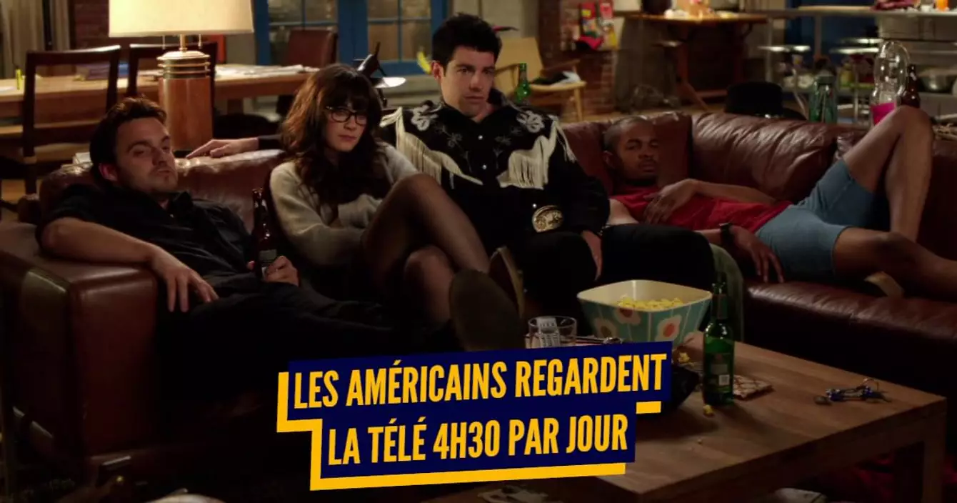 Encore un nouveau record pour les États-Unis qui regarde la télé en moyenne 270 minutes par jour, soit 4h30. Après le temps consacré à dormir c'est l'activité à laquelle les américains s'adonnent le plus en dehors du travail. Rappelons qu'ils ont élu Donald Trump comme président. Coïncidence ? Le doute est permis.