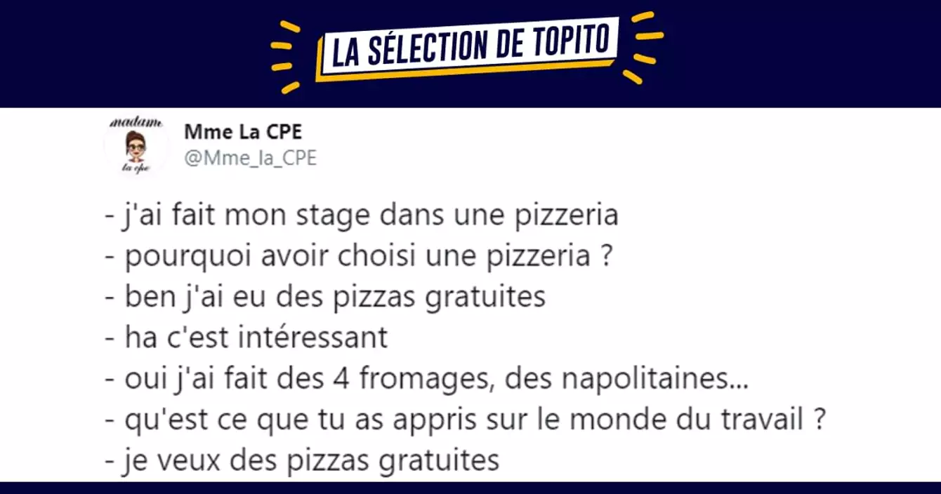 Un stage, c'est toujours le moment d'en apprendre plus qu'en cours (on le dit dans ce top des trucs mieux en stage qu'en cours). La twittos @Mme_la_CPE a eu la bonne idée de répertorier les petites perles de ses élèves de 3ème, après leurs stages. C'est drôle, c'est bienveillant, alors on partage avec générosité.