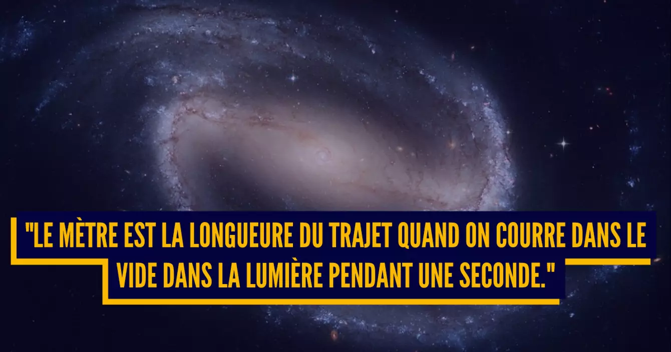 "Le mètre est la longueure du trajet quand on courre dans le vide dans la lumière pendant une seconde."