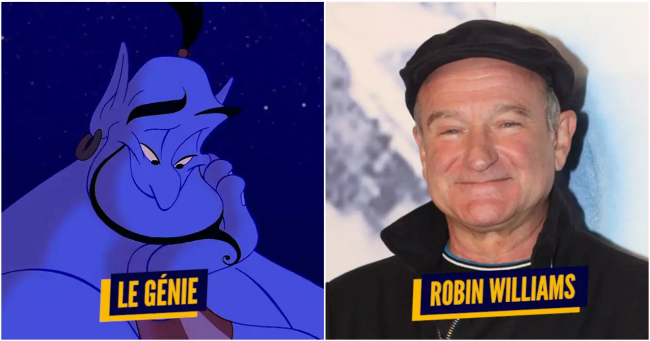 Comme dans le cas Pocahontas, c’est Robin Williams qui a posé sa voix sur le Génie bleu du dessin animé. L’équipe s’est donc calée sur son physique et ses expressions faciales pour concevoir le visage du personnage. Et il faut avouer qu’il y a un petit quelque chose, oui.