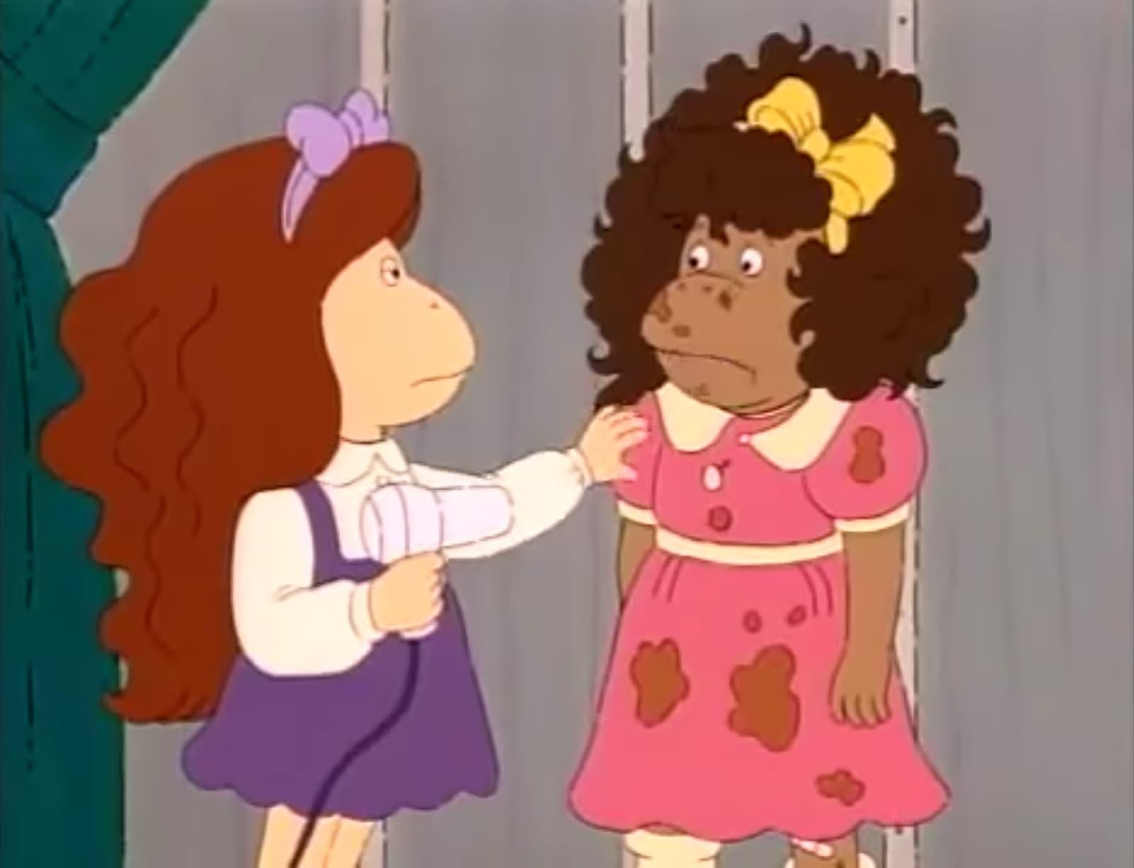 Dans Arthur, il n'y a a priori aucun problème : tous les animaux vivent ensemble et sont tolérants les uns envers les autres. Oui, mais il y a un mais. La copine d'Arthur, Francine, est un singe, ainsi que ses parents. Et la famille de Francine est pauvre. Francine et sa sœur sont obligées de partager une chambre (ce qui n'est le cas d'aucune autre fratrie dans le dessin animé), et leur père est éboueur, ce qui fait honte à Francine. Si on ajoute à ça le fait que Francine se retrouve avec une coupe afro sur la tête pendant un épisode, on n'a plus trop de doutes sur le parallèle qui est fait entre la famille des singes et les afro-américains dans le dessin animé. C'est chaud.