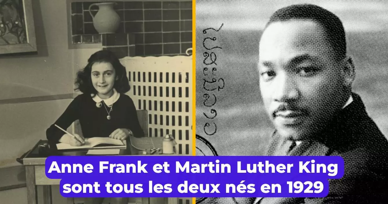 Deux icônes ayant marqué l’Histoire à jamais ont vu le jour en 1929. Ils ont tous les deux connu une mort tragique que l'on connait tous : Martin Luther King assassiné à 39 ans et Ann Franck décédée dans le camp de Bergen-Belsen à l’âge de 15 ans…