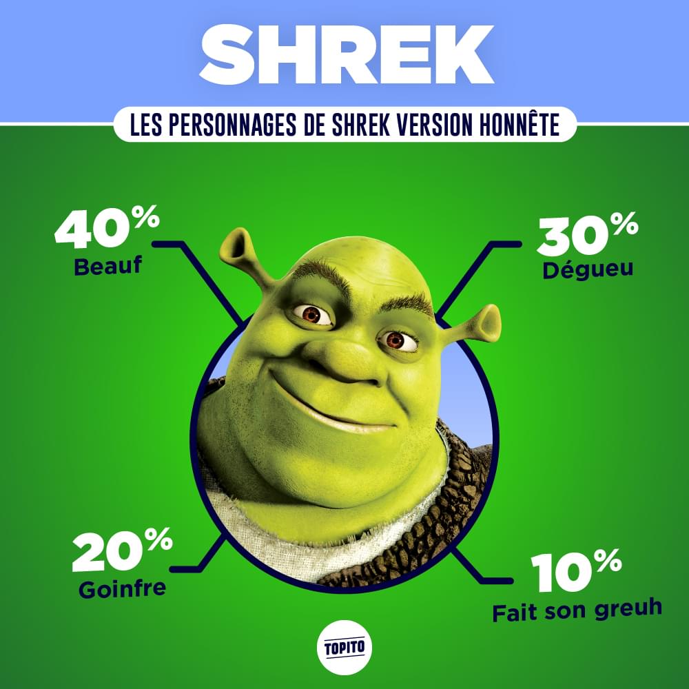 Une série de films incroyable, avec tout plein de trucs qu'on avait pas compris quand on était enfants, ce qui fait qu'il s'adresse même aux adultes. Vous pouvez aussi aller voir les meilleurs tweets sur Shrek, c'est vraiment drôle.
