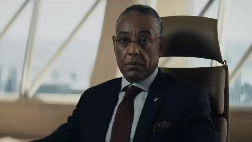 Mais que fout-il ici ? Le gars nous a déjà traumatisé dans Breaking bad, il continue de hanter nos nuits en revenant incarner le FDP en chef derrière son costar cravate.