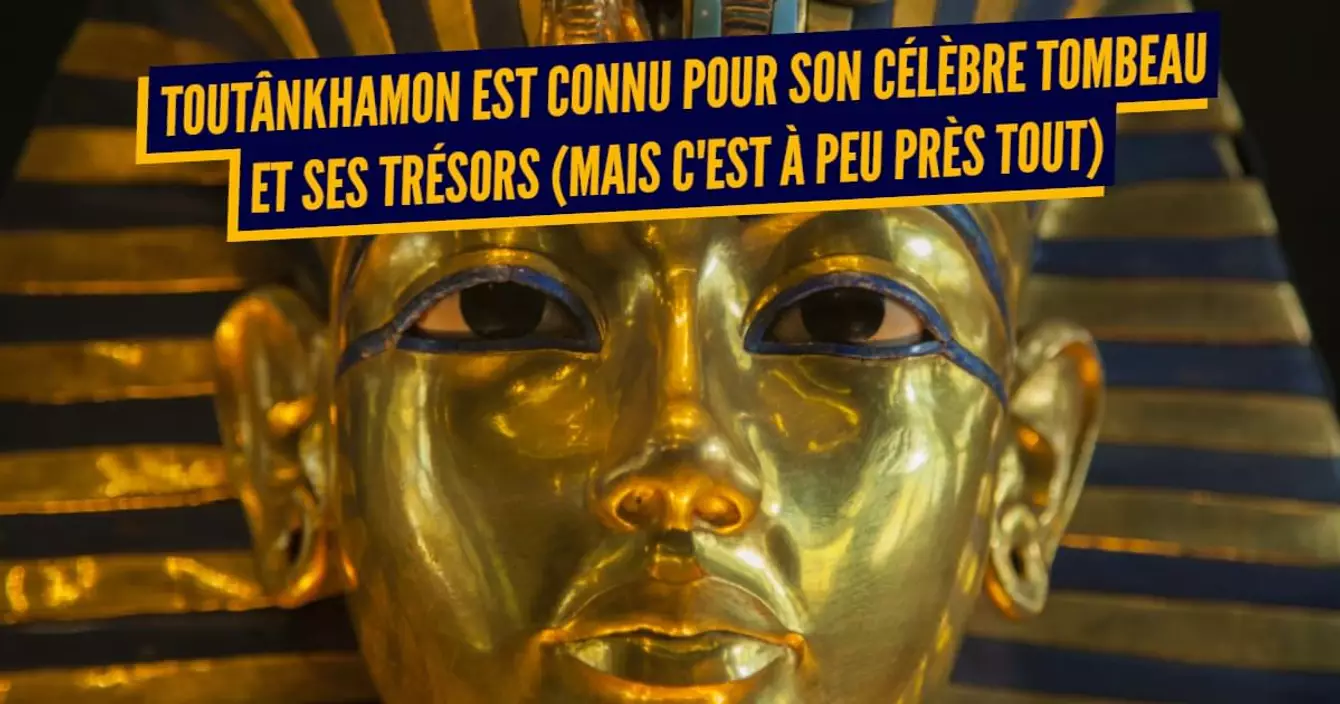 Toutânkhamon est peut-être le pharaon le plus connu de l'Égypte ancienne et c'est paradoxalement celui à qui l'on peut attribuer le moins de choses tant il régna jeune et peu. Fils d'Akhenaton, il est monté sur le trône à l'âge de 9 ans et a régné à peine 10 ans car il est mort vers 1 327 av. J-C à l'âge de 18 ans. Si on parle beaucoup de lui c'est pour la découverte de sa tombe presque intacte en 1922 par un archéologue britannique. Son tombeau a permis aux égyptologues de mener de précieuses recherches sur le processus de momification, mais aussi de découvrir une quantité d'objets d'or, d'albâtre et d'ivoire qui ont fait l'objet d'une exposition « les Trésors de Toutânkhamon » (à la Villette de Paris) avant de retourner définitivement au Caire. La malédiction qui aurait poursuivi tous les étrangers ayant violé sa tombe participe aussi à sa renommée.