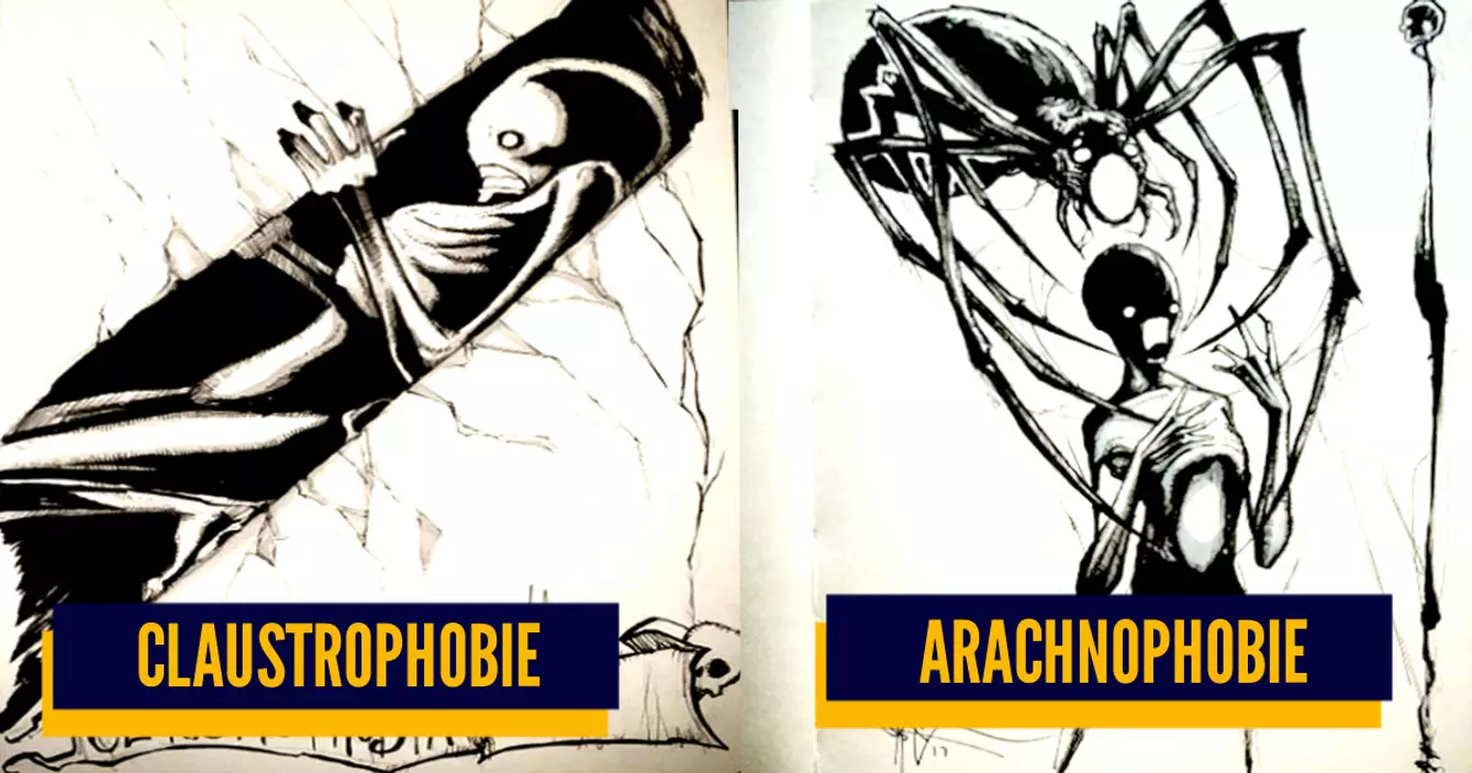 Ce qui est pratique, avec l'illustration, c'est que ça permet d'y voir plus clair par rapport à des choses compliquées. Quand on prend les maladies mentales, par exemple, il n'est pas toujours évident de faire une description précise de ce que le malade ressent. Et les phobies, c'est pareil. Si on commence à parler des phobies, l'iconographie devient forcément assez sombre. Cool, parce l'artiste Shawn Coss a un univers justement pas très jouasse.