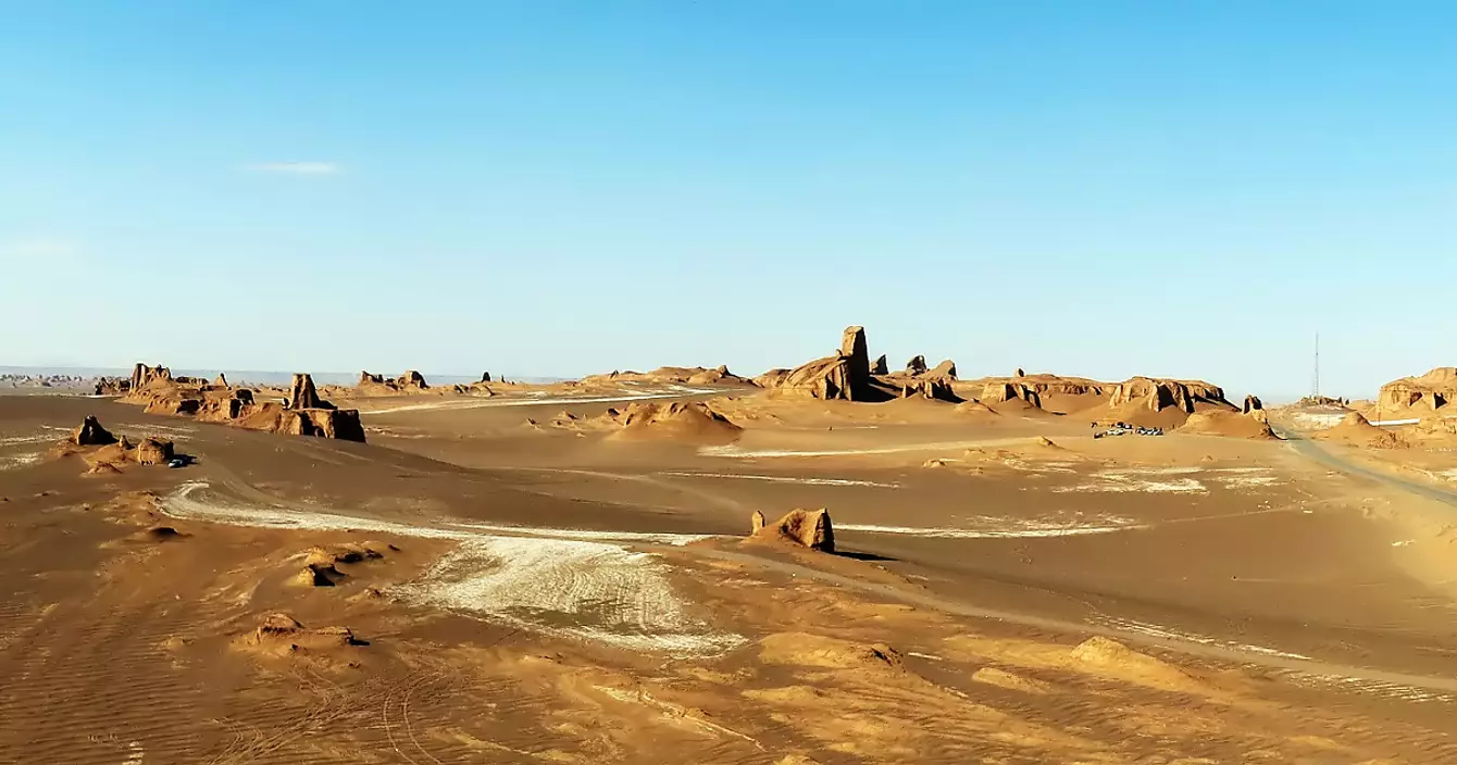 Des températures au sol qui touchent les 70°C, ne cherchez pas, le « Désert du vide » dans la province de Kerman dans le sud-est de l'Iran est l'endroit le plus chaud de la planète depuis qu'on peut mesurer par satellite. Donc si on vous propose de faire un jogging pour visiter les 50 000 m² de ce coin, déclinez poliment et contentez-vous de ces photos.