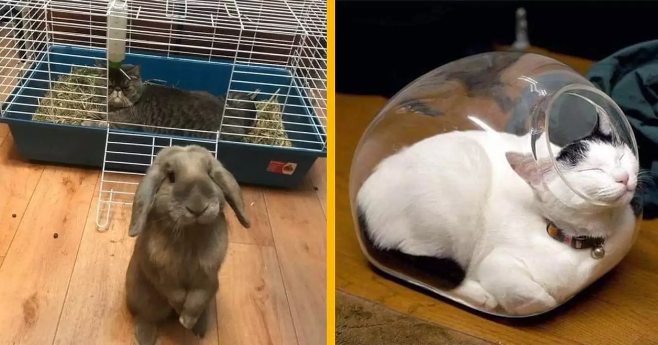 Salut les ptits potes, comment ça va chez vous ? La famille ça va ? Et plus important encore, comment vont les animaux de compagnie ? On a déjà vu des photos de chiens qui dorment et rien d'anormal n'avait été remarqué. Pour les chats, c'est une autre histoire. Le chat est un animal ingrat : il sait que tu dépenses ton temps, ton argent et ton affection pour lui mais il s'en fiche complètement. Tu auras beau acheter 14 paniers et des centaines de jouets insolites pour chats, ton compagnon félin préférera toujours dormir dans un carton et jouer à faire ses griffes sur ton canapé neuf. Tu n'es pas seul, on vit tous la même chose.