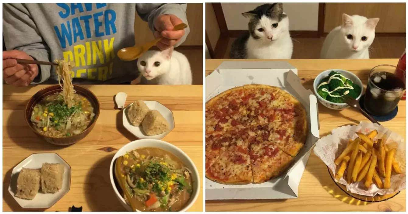 Constatant qu'à chaque fois qu'ils passaient à table leurs chats rappliquaient dans la seconde, un couple japonais a eu l'idée de capturer sur Instagram tous ces moments où ils se sentaient légèrement observés (et où leurs chats mettaient tentaient par tous les moyens de leur chourer un truc à bouffer). Et le pire c'est que c'est mignon.