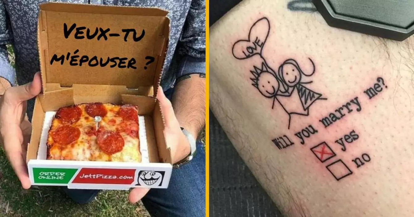 La demande en mariage parfaite n'existe pas. Mais y'a quand même moyen de faire un truc sympa, romantique, dans un joli cadre, et sans public (parce que c'est horrible de demander la main de quelqu'un devant des gens). Ben là, je vais vous montrer l'inverse : voilà le pire de ce qui se fait en matière de demandes en mariage. Le genre de demandes auxquelles on a envie de répondre « non » tout en déposant une plainte au commissariat le plus proche. J'ai envie de demander MÉ IL É PASSER OU LE ROMENTISME ????