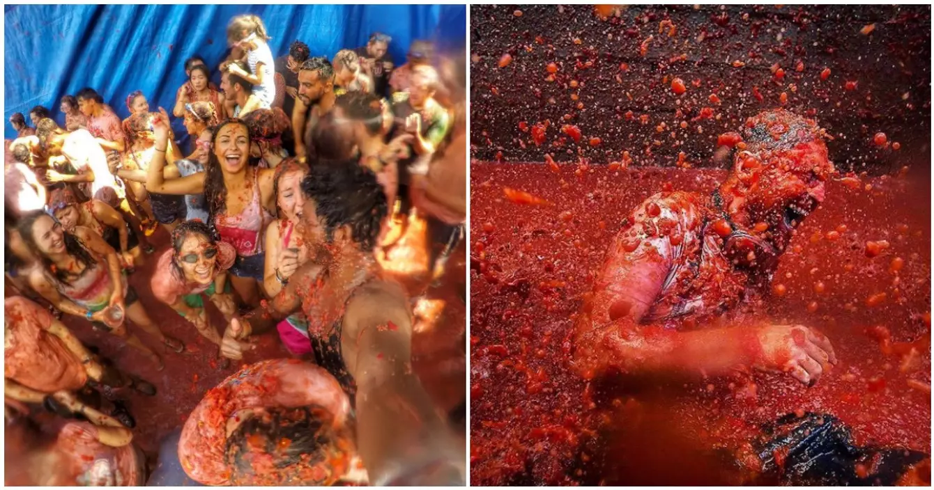 Depuis 1945, la ville de Buñol dans la province de Valence accueille un festival aussi barbare que crétin : la Tomatina. L'idée est simple : on se réuinit à 20 000 et on passe la journée à se lancer des tomates suffisamment mûres dans la gueule. Voila. C'est tout. Pas vraiment d'histoire officielle ne de signification profonde, l'objectif étant de finir le plus crado possible. Avantage : la tomate, c'est photogénique. Inconvénient : ça fait de la lessive.