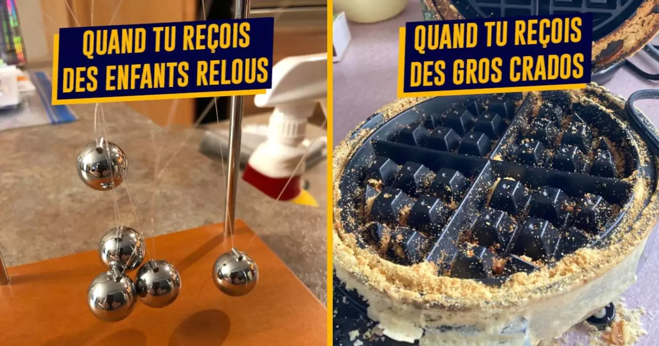 Il y a des situations qui sont gênantes sans raison parce que la majorité des gens ont peur de déranger. Et puis, il y a les personnes sans-gênes, celles que tu n'as vraiment pas envie d'inviter chez toi. Pour la petite anecdote, une amie de mes parents invitée chez nous a voulu repartir avec la moitié de nos jouets « parce qu'on était trop vieux pour jouer avec ». Et vous, c'est quoi le pire truc que des invités aient fait chez vous ?