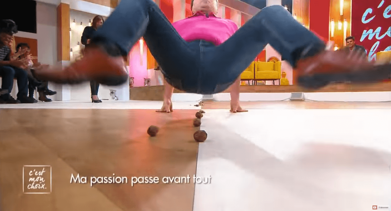 Non non, on invite Gérard dont la passion est d'éclater des noix avec le cul. Bravo Evelyne.