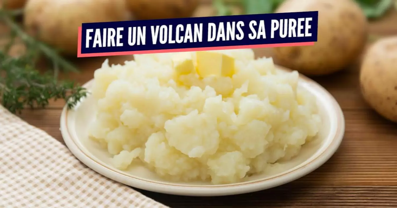En creusant un puits au milieu, pour y mettre la sauce du rôti, et imaginer que c’était un vrai volcan avec de la lave brûlante. Une fois que c’était fait, attendre que la sauce coule bien sur les bords, puis tout mélanger, et enfourner des grosses cuillerées en kiffant sa vie.