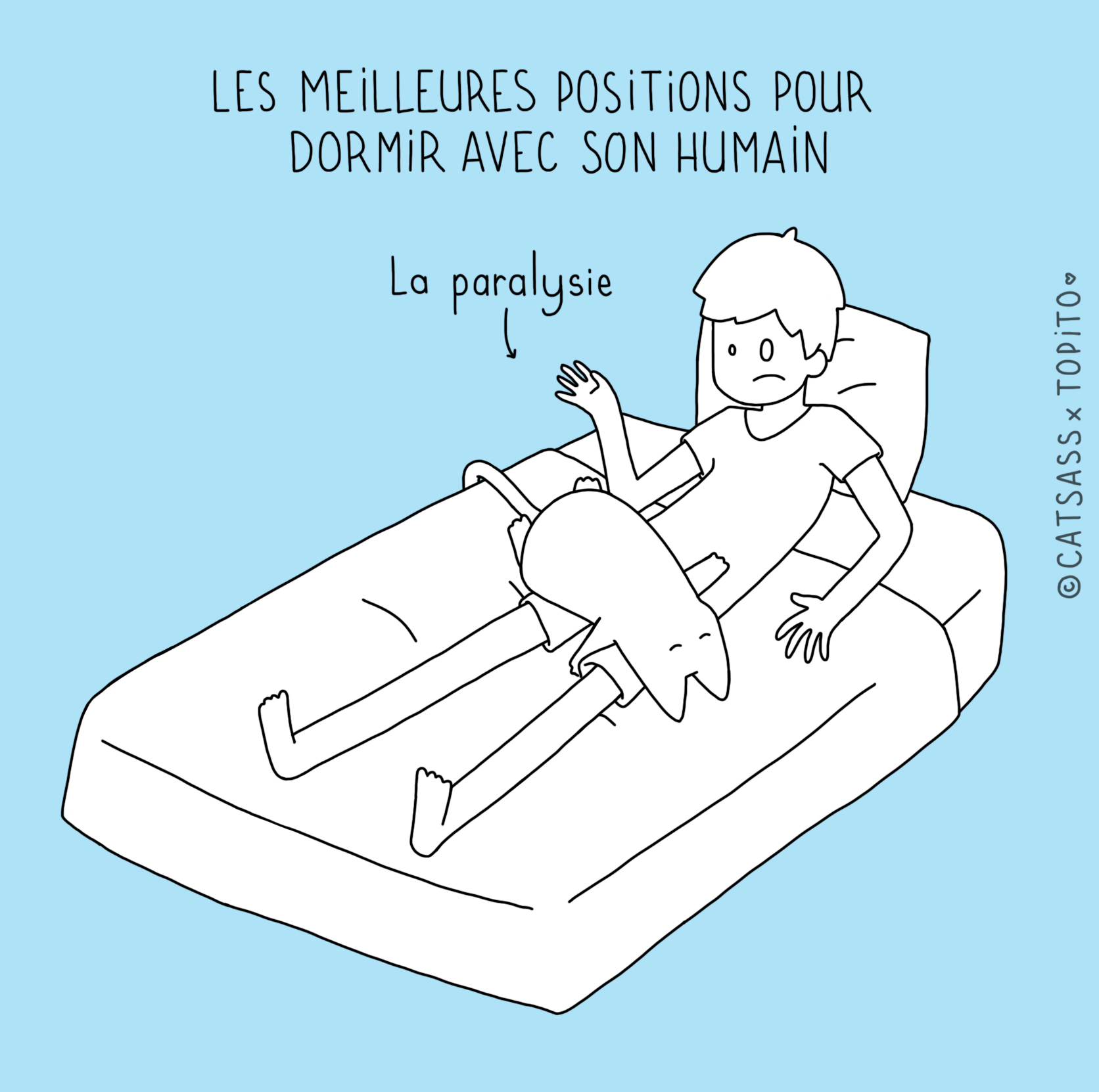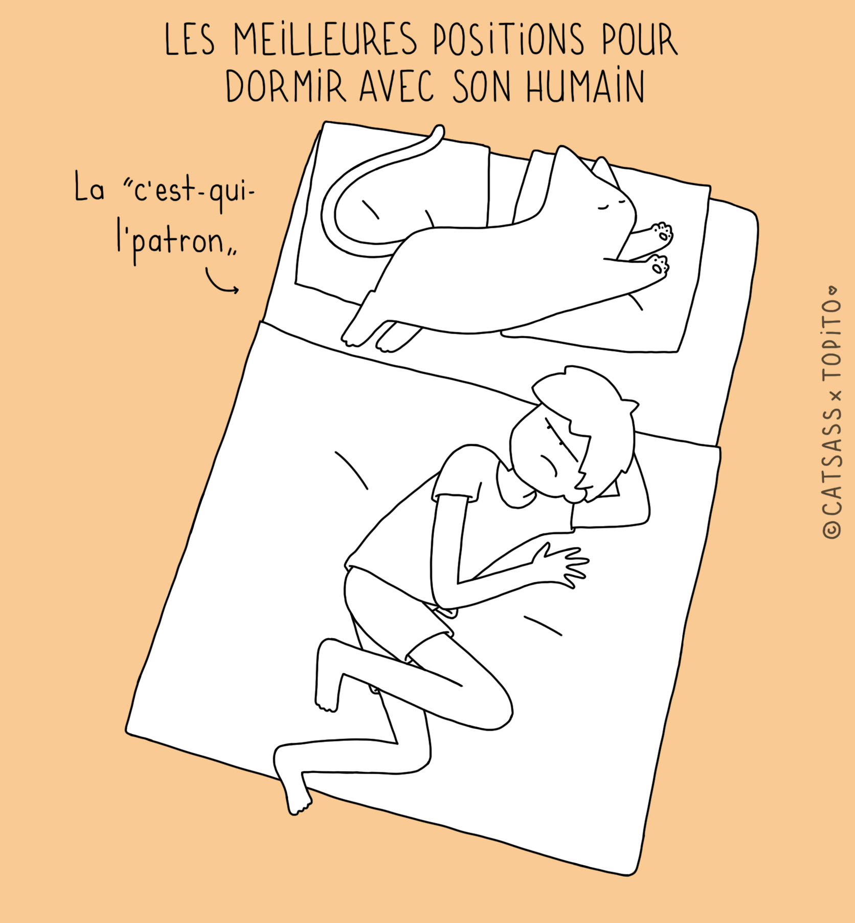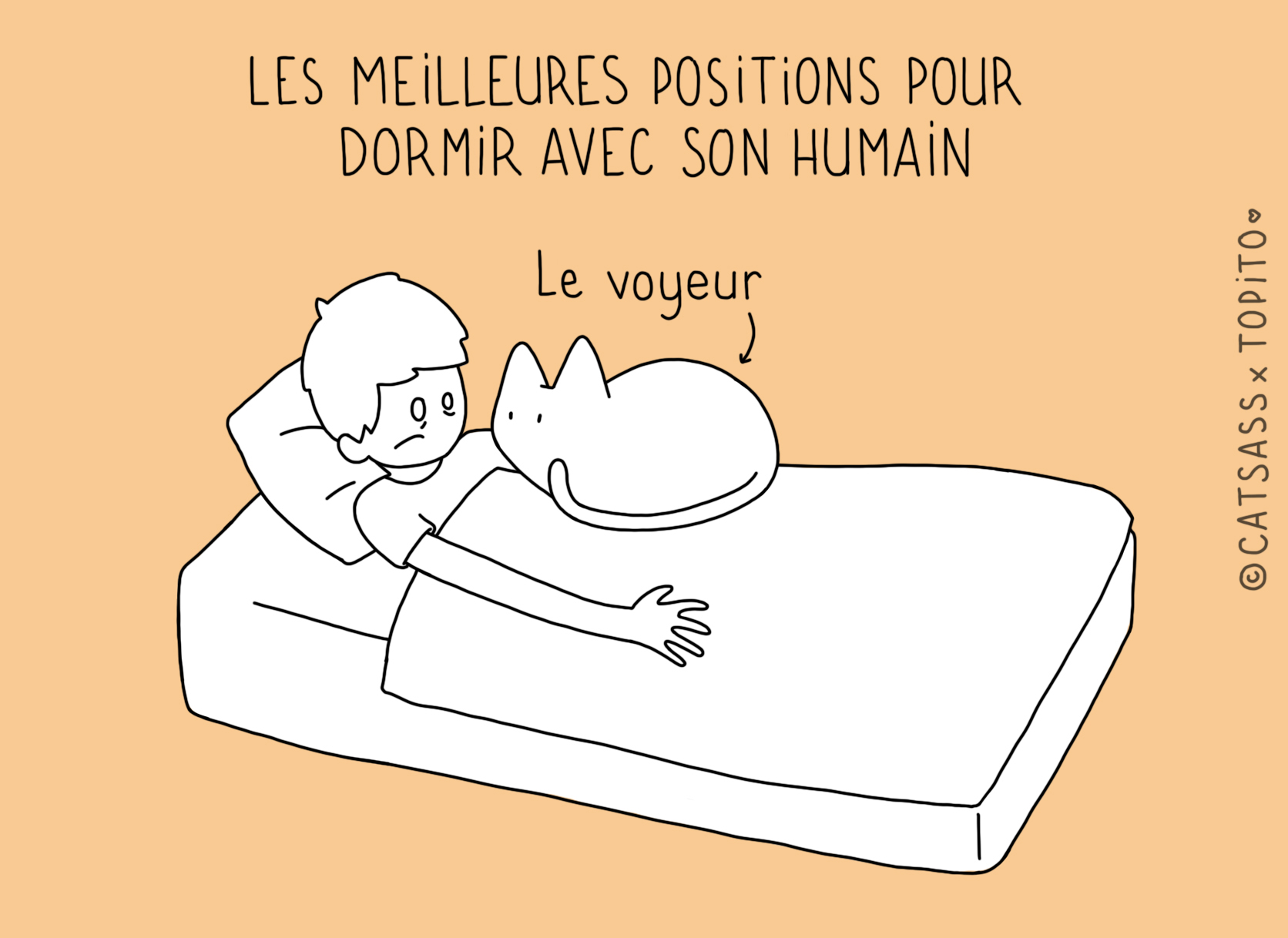 Parce que nous avons remarqué qu'il n'était pas facile facile de pioncer tranquille quand on avait un gentil petit chat à la maison, nous sommes allés demander à l'illustratrice Catsass de se pencher sur la question. Après des mois d'études approfondis, il semblerait que nous soyons arrivés à la conclusion que ces bêtes sont de belles enflures.