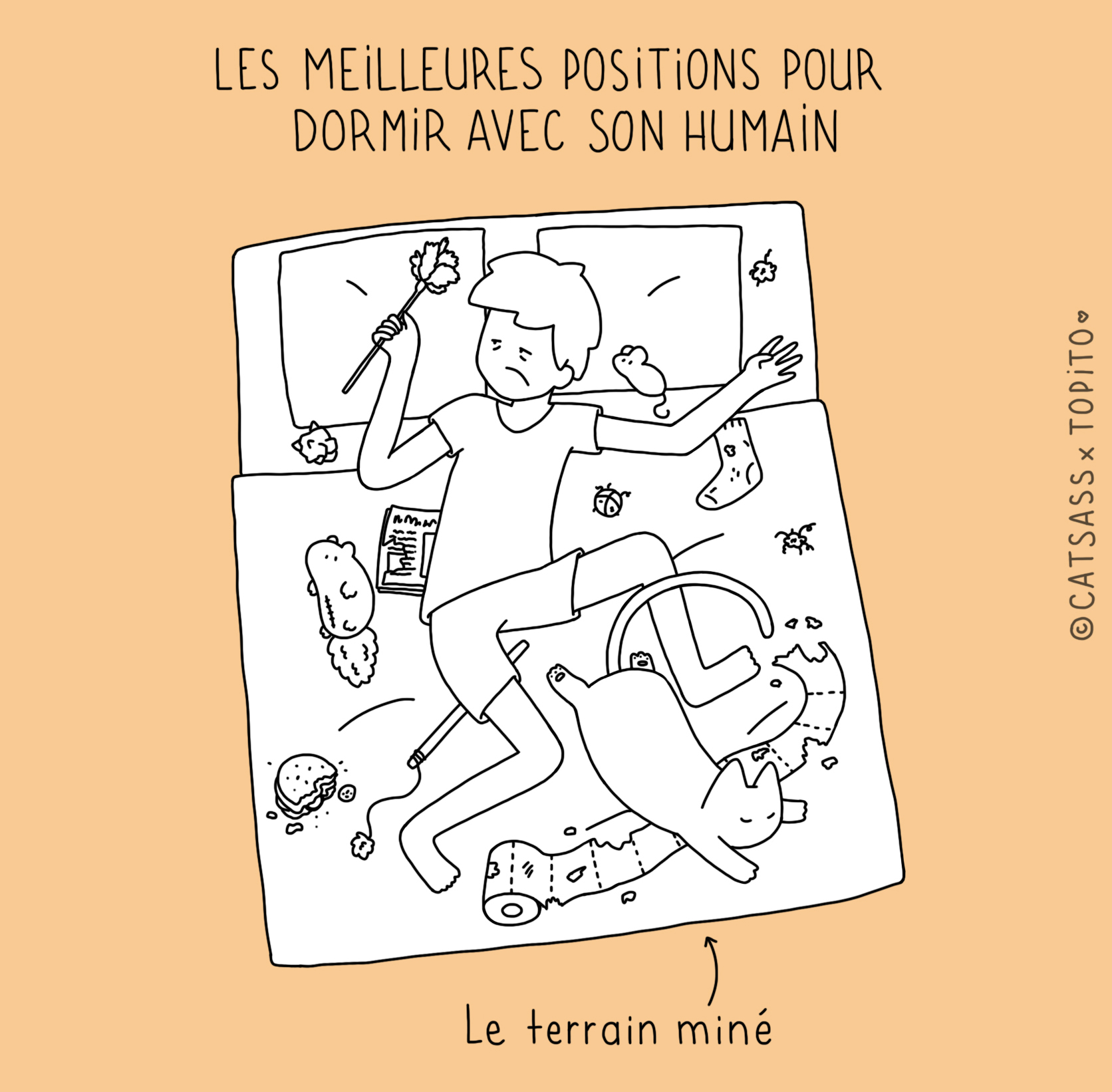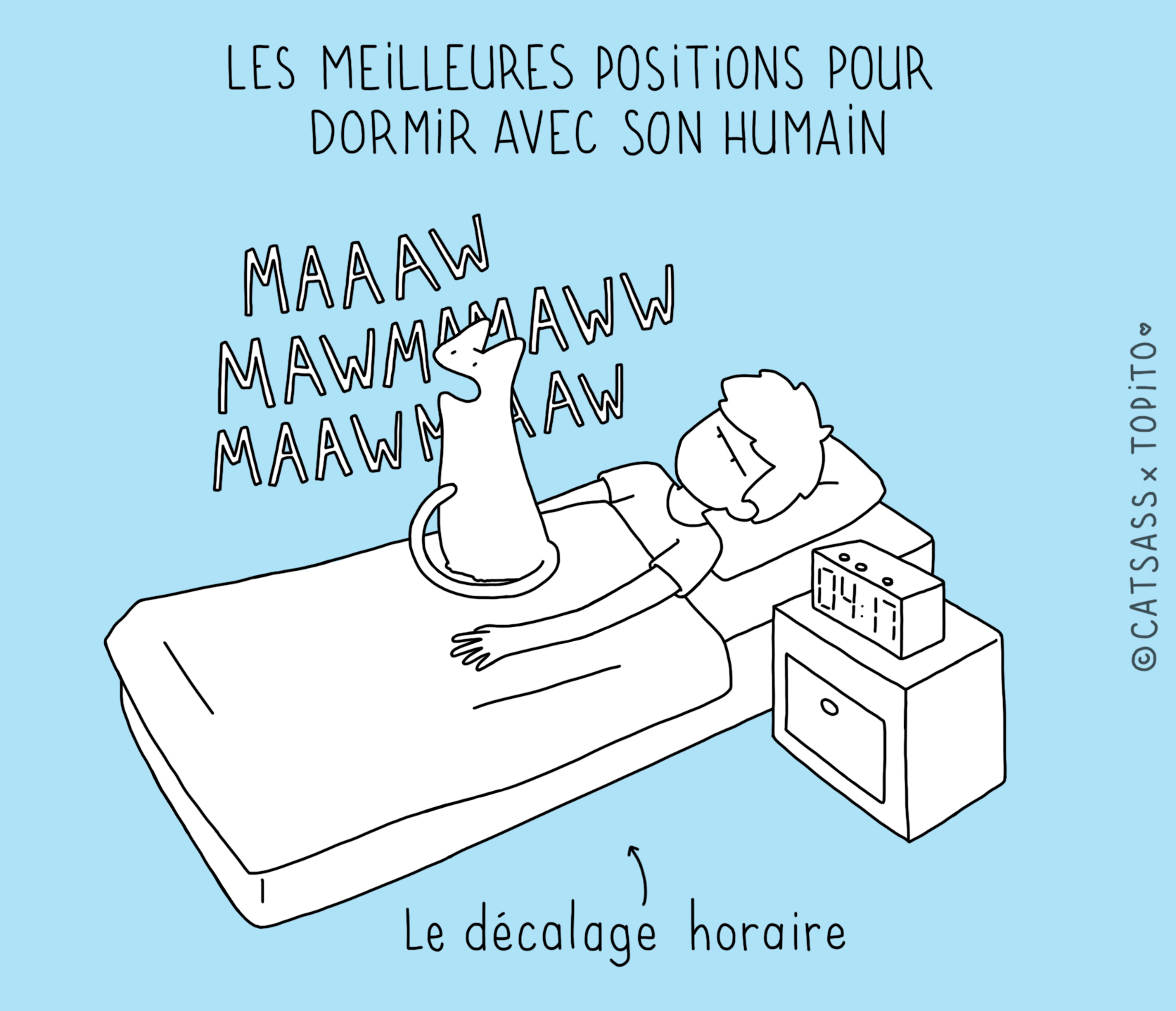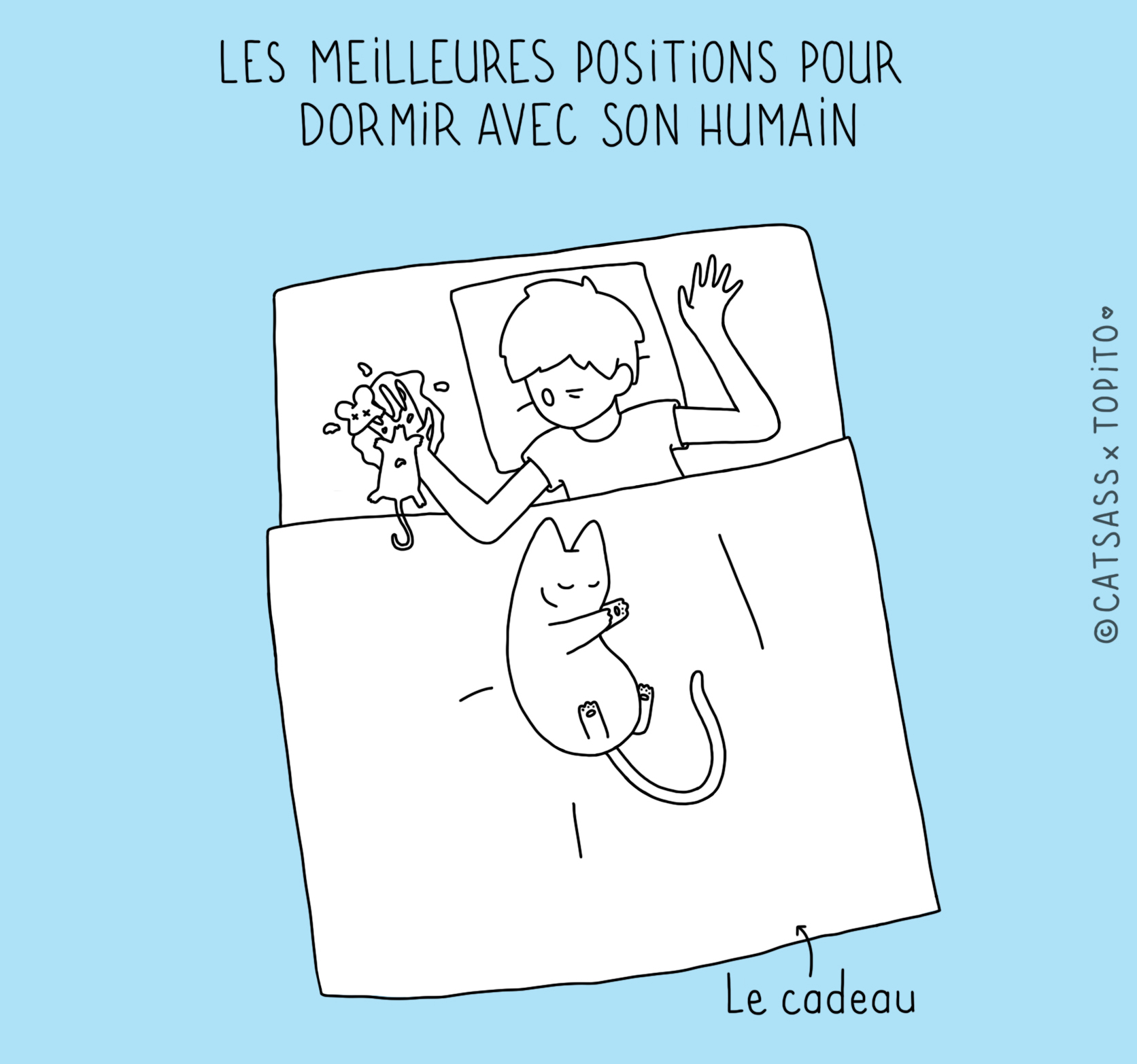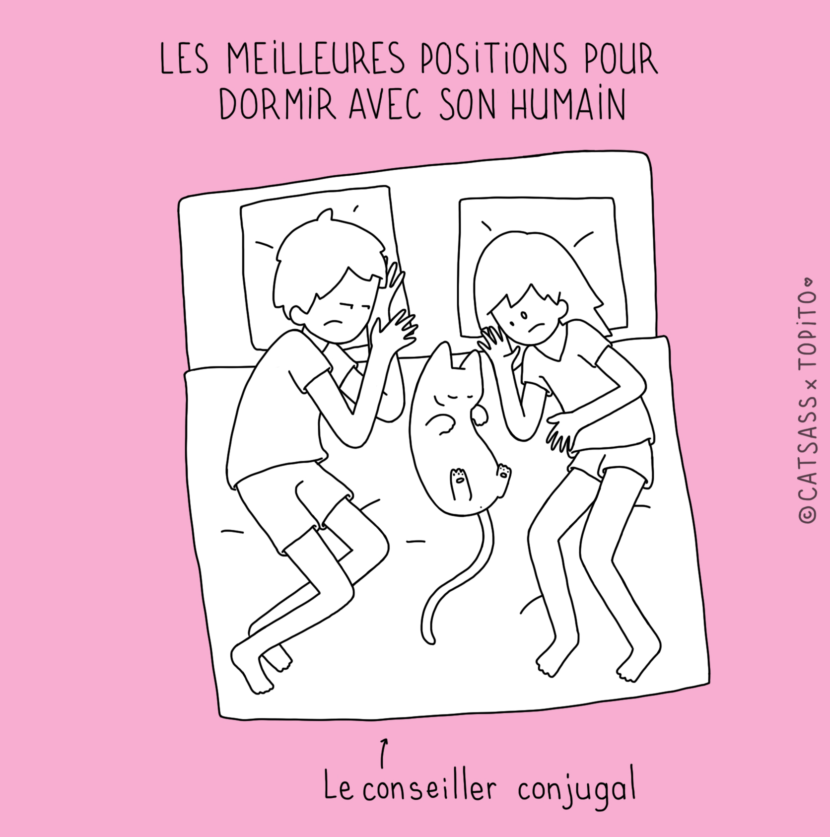 Parce que nous avons remarqué qu'il n'était pas facile facile de pioncer tranquille quand on avait un gentil petit chat à la maison, nous sommes allés demander à l'illustratrice Catsass de se pencher sur la question. Après des mois d'études approfondis, il semblerait que nous soyons arrivés à la conclusion que ces bêtes sont de belles enflures.