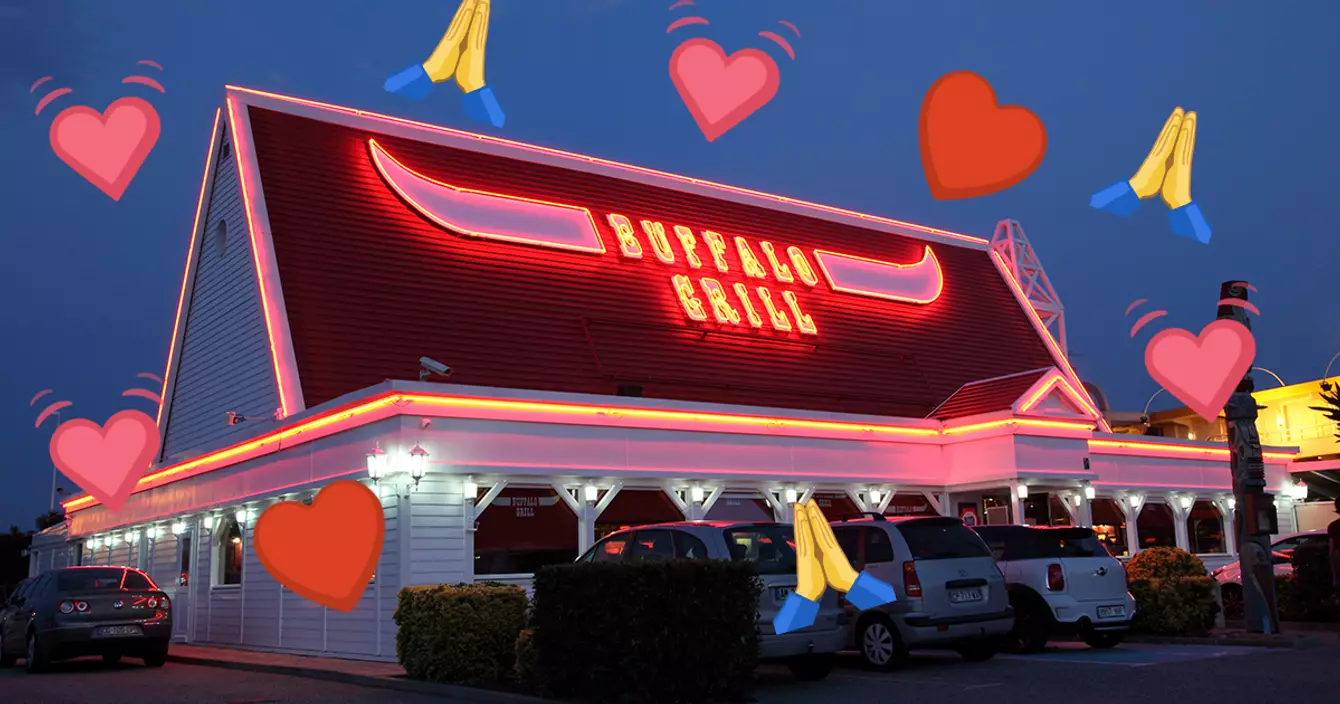 Il y a presque autant de restaurants Buffalo Grill en Europe que de jours dans l'année (361). Tu sais très bien ce que ça signifie. Tu peux te faire un Buff' tous les jours de l'année et recommencer l'année d'après sans te lasser. De Limoges à Madrid en passant par Lausanne, Dunkerque, Montélimar ou Brest, tu vois le néon rouge du bâtiment à plusieurs kilomètres à la ronde. Tu n'as plus d'excuse.