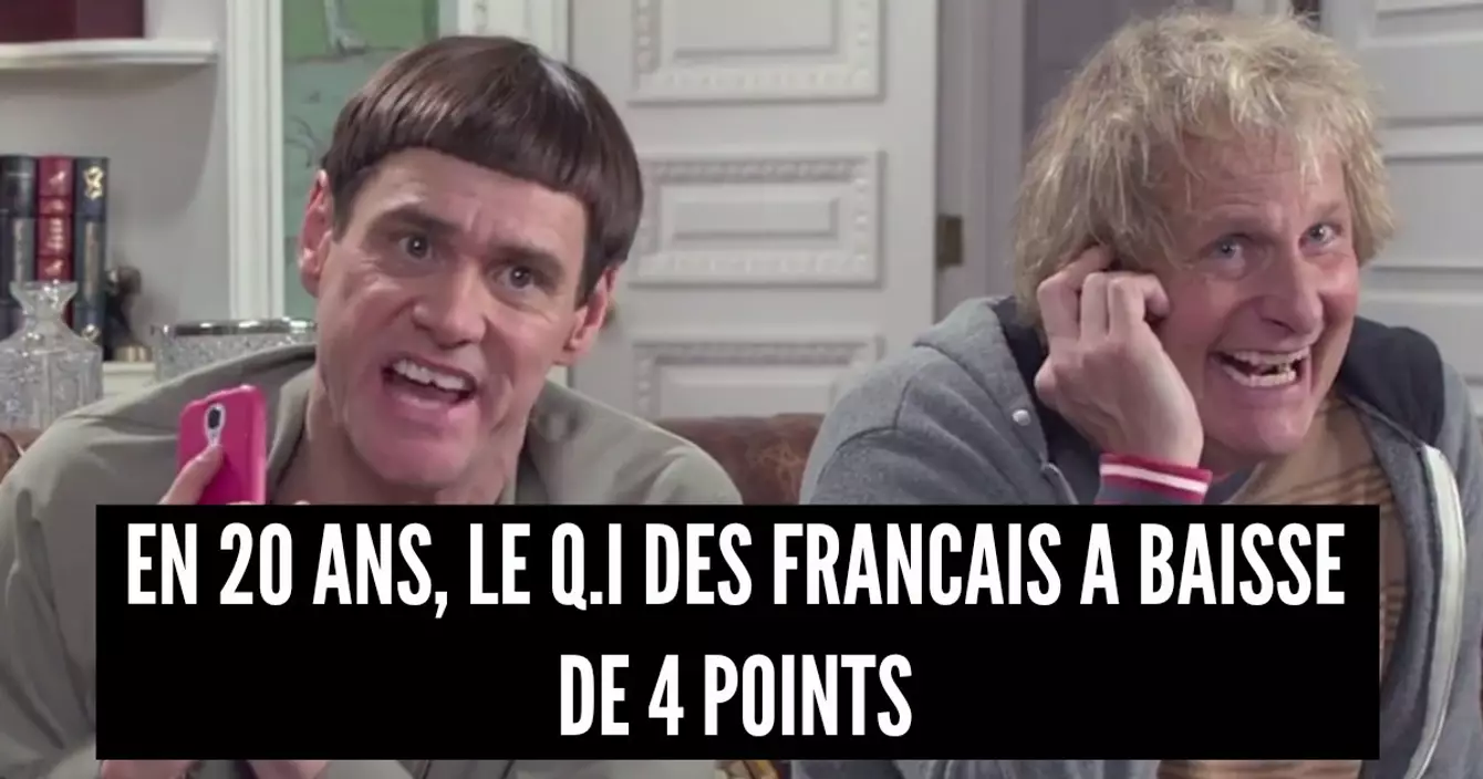 Plusieurs études montrent qu’en France et dans le reste du monde la moyenne de Q.I. en est baisse. Bon clairement, ça se voit que les rédacteurs de Topito n’ont pas participé à ces expériences (car pour travailler à Topito il faut un minimum de 128 de Q.I., un groupe de sang AB -, et un tatouage de Gilbert Montagné sur la région pubienne). Même si c’est un coup dur, il y avait pourtant quelques signes annonciateurs. ENQUEQUETE (132 de Q.I. pour ma part ont été nécessaires pour aboutir à ce niveau d'humoristicité).