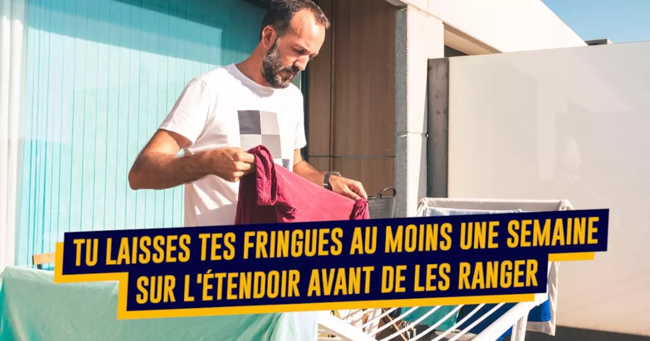 Tu étends ton linge dès que la machine est finie mais tu laisses le linge sec 10 jours sur l'étendoir