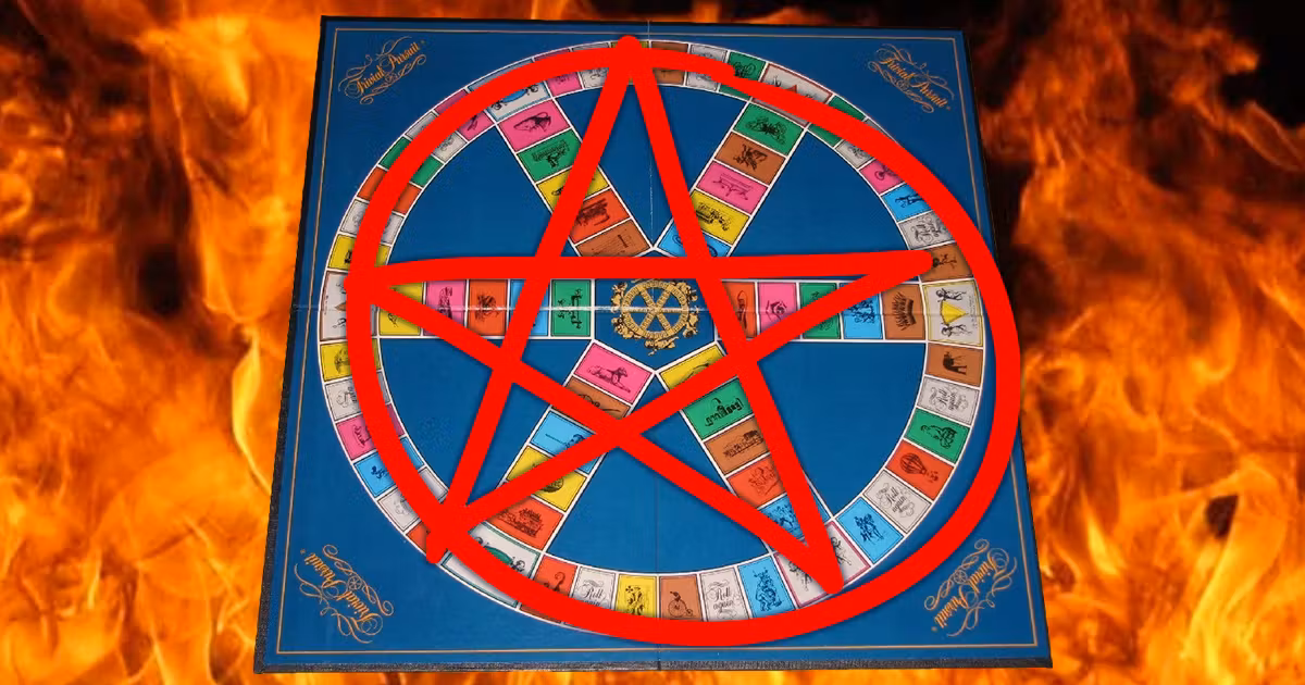 - Le plateau est un symbole de Satan C’est tellement évident qu’on n’y prêtait même pas attention. Les cases du plateau du Trivial Pursuit sont pratiquement disposées en pentagramme, symbole sataniste. Le crime est signé. Une rumeur dit même que si on verse du sang au milieu de l’édition génius en répondant à une question arts et littérature, un golem de camembert apparaît. http://giphy.com/gifs/thumbs-up-i7Mtc0aWPTZyo