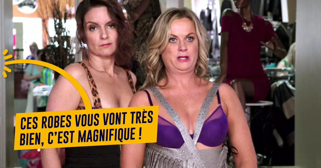 Quand tu essaies cette robe boudinée qui défie les lois de la gravité, il te dit que tu ressembles à une déesse dedans