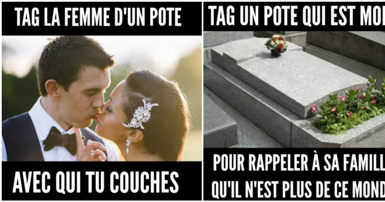 On connaît les bails : sur Facebook pullulent depuis quelques temps ces images où il faut taguer le nom d'un pote en lien avec un texte. Comme j'en ai ras le cul que ça envahisse mon mur, je propose quelques compositions afin de niquer le game une bonne fois pour toutes.