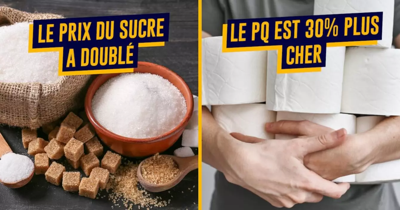 Mesdames et Messieurs, bonjour. Bienvenue à bord de ce voyage vers « la vie chère », à bord de notre magnifique moyen de locomotion, joliment nommé "inflation". Durement bâtie depuis plusieurs mois, à coup de réchauffement climatique, de guerre en Ukraine et de retombées économiques post Covid, nous avons l'honneur de vous annoncer qu'elle atteint aujourd'hui des niveaux record. Afin de vous donner une idée du délicieux voyage dans lequel vous venez d'embarquer, voici quelques exemples de prix qui ont explosé en 12 mois seulement. Je vous laisse apprécier, tout en pleurant des larmes de sang. Bisous.