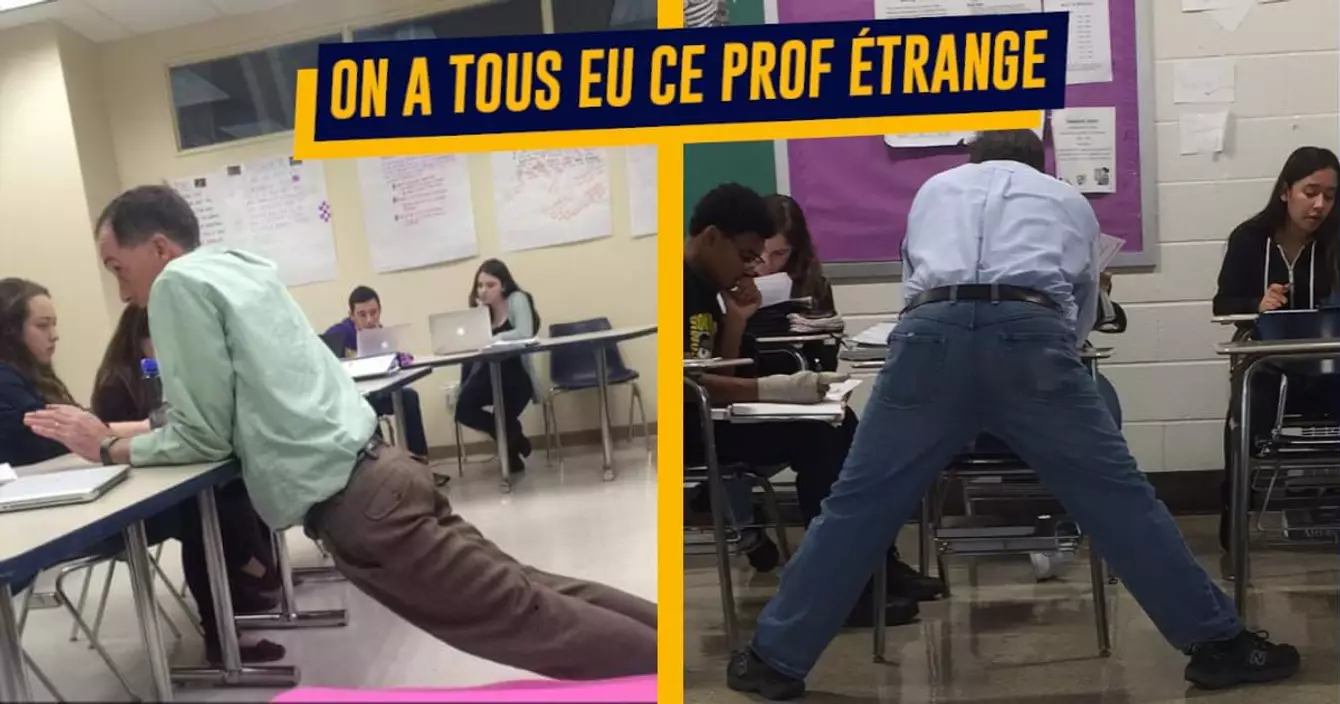 On trouve tout et n'importe quoi sur Twitter. Ça peut être des anecdotes historiques, des blagues sur le gainage ou des histoires qui font peur mais heureusement, on trouve aussi des trucs très drôles. Quelques jours après la rentrée, une twittos a partagé une photo de son prof de géométrie dans une position improbable et des dizaines de personnes ont répondu avec des photos similaires. Alors d'accord, les tables sont un peu trop basses pour pouvoir s'accouder, mais ils pourraient prendre une chaise non ?