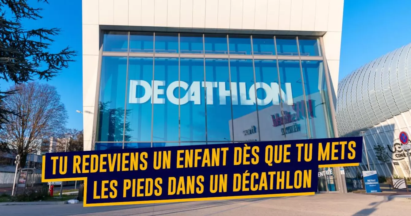 Avant, comme tous les gosses, tu kiffais les magasins de jouets, mais ça t'est passé en grandissant. Par contre, tu as trouvé un nouvel endroit où tu te sens comme un gosse qui a envie de tout acheter, et c'est chez Decathlon. La dernière fois que t'y es allé, t'as failli repartir avec une planche de surf alors que t'as jamais pris un cours de ta vie. Vraiment, ce magasin c'est devenu l'atelier du Père Noël à tes yeux.