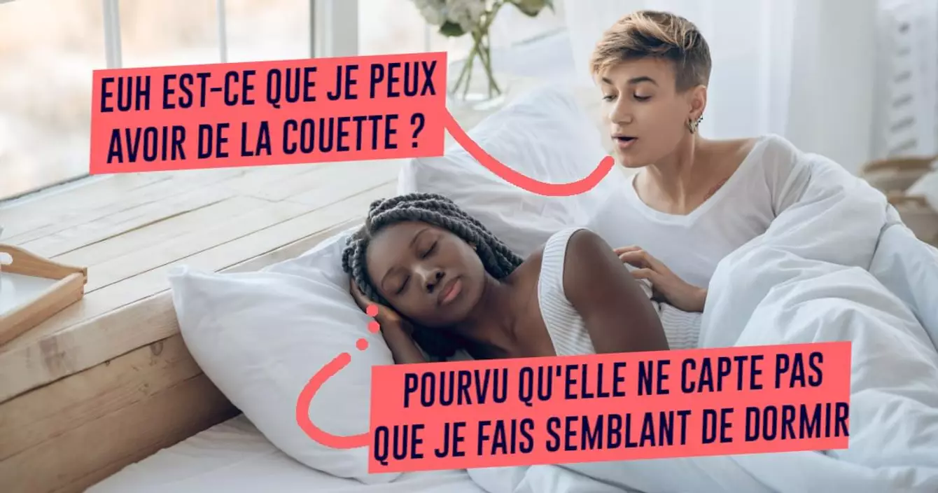 Un truc cloche dans votre couple, vous n'arrivez pas à mettre le doigt dessus mais nous on le sait bien : c'est votre sommeil qui ne va pas parce que vous partagez votre lit avec quelqu'un et que ce n'est pas naturel. Dans les grottes nos ancêtres se collaient les uns aux autres pour avoir chaud mais c'est à peu près le seul avantage. Voici les 10 bonnes raisons de faire lit séparé et même chambre à part.