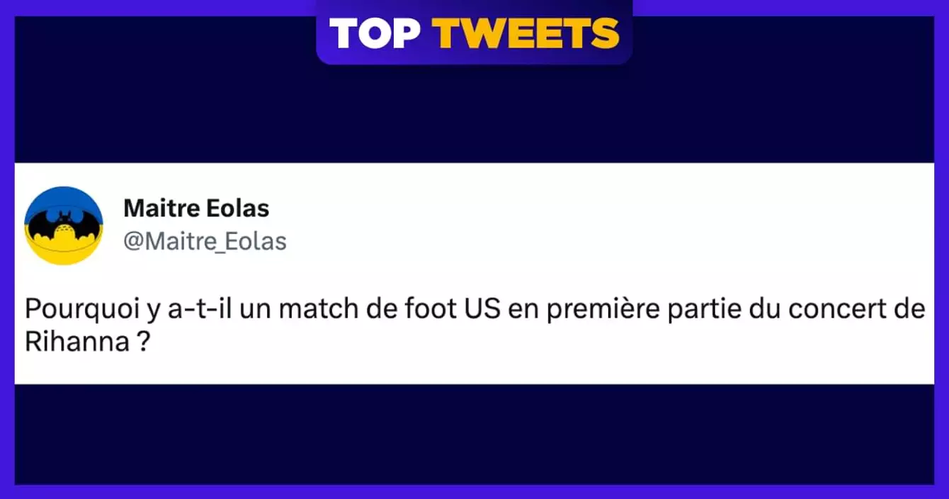 Dimanche soir a eu lieu l'un des événements annuels les plus suivis au monde : le Super Bowl, la grosse finale de football américain. Mais ce qui fait le plus parler, pendant le Super Bowl, c'est le concert de la mi-temps qui met toujours une superstar à l'affiche. Ce coup-ci, c'est Rihanna qui s'y est collée, et autant dire que ça a suscité une tonne de réactions. Entre sa belle tenue rouge, son show exceptionnel et l'annonce en direct de sa deuxième grossesse (alors que beaucoup attendaient l'annonce d'une tournée), y'a eu de quoi dire. On vous partage les meilleurs tweets et memes qui ont découlé de ce moment totalement dingo.