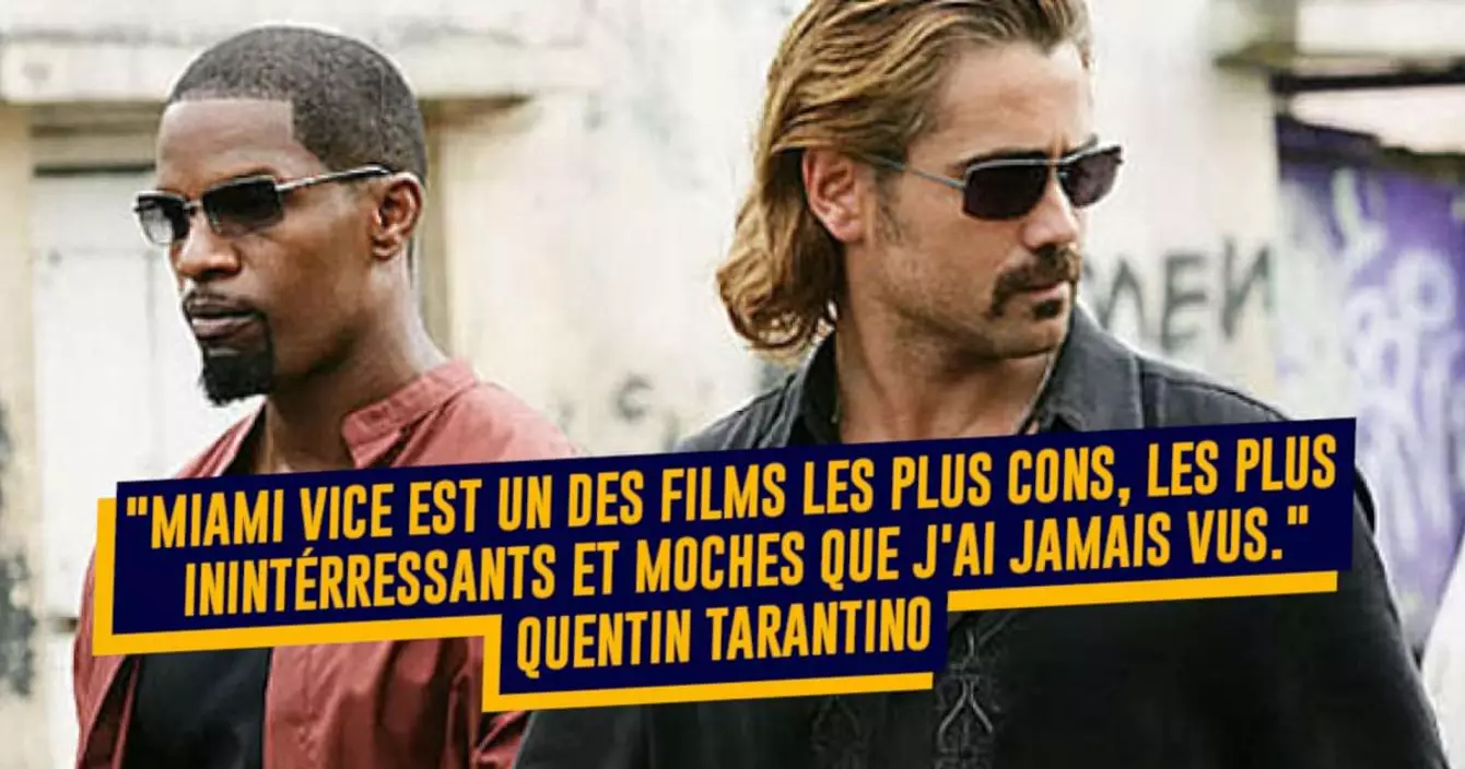 Vous trouviez que Tarantino était dur avec Matrix Reloaded ? Eh bien accrochez-vous parce que sur Miami Vice il est encore plus violent : « Le film que j'ai le plus détesté cette année était - et de loin - Miami Vice. C'est vraiment de la merde. Michael Mann a été pendant longtemps un des véritables grands auteurs d'Hollywood, mais j'avais aussi trouvé que Collateral était une merde racoleuse. […] Miami Vice est un des films les plus cons, les plus inintéressants et les plus moches que j'ai jamais vus ! » Sans commentaires, en même temps c'était vraiment pas génial comme film.