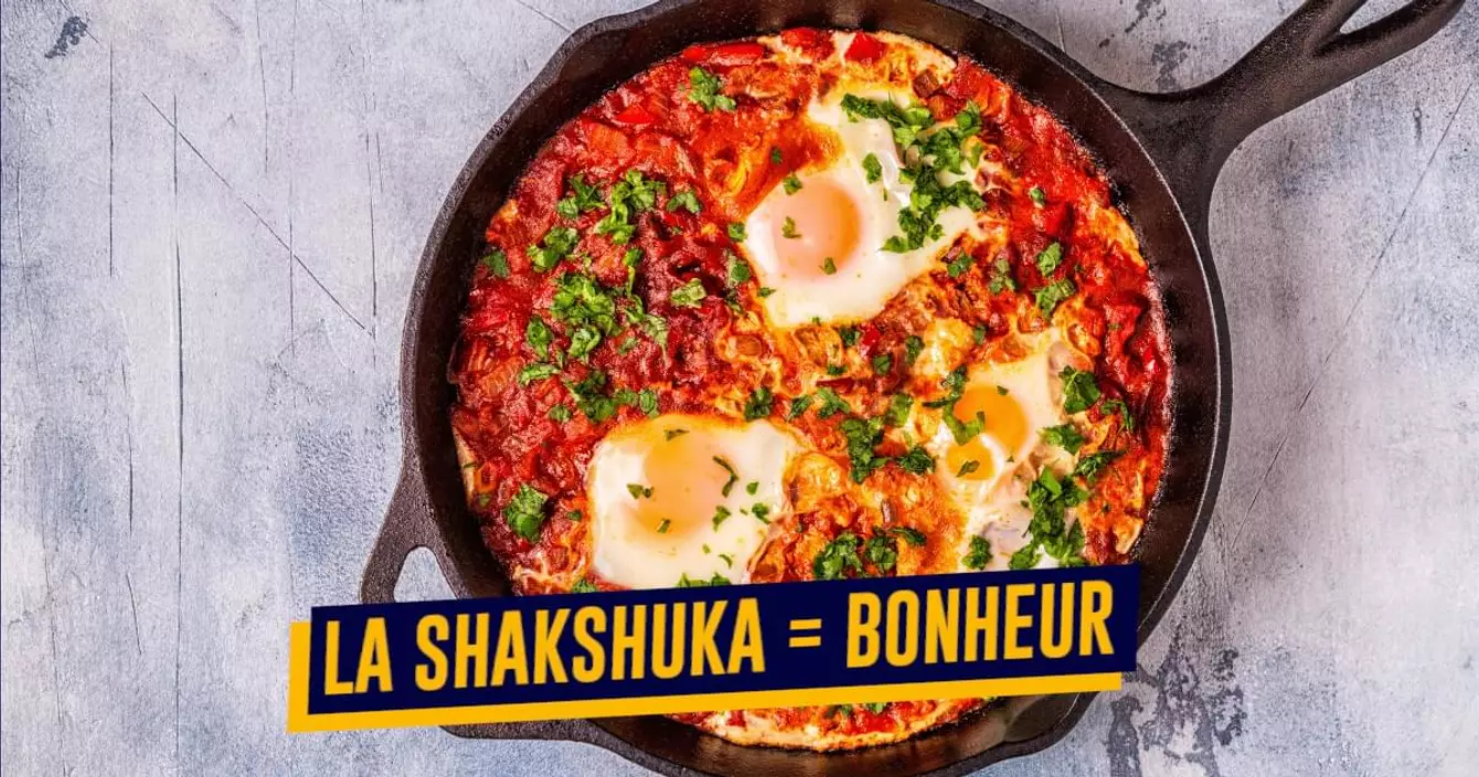 Pour cuisiner une bonne Shakshuka pour deux, il te faut une boite de tomates concassés, un oignon, deux oeufs et un peu de pain (du pain complet c’est encore mieux, plus riche en fibres et c’est bon pour toi). Commence par faire revenir les oignons coupés en lamelles dans une poêle avant de rajouter les tomates coupées en petits morceaux. Pendant que ça cuit, rajoute un peu d'épices comme du cumin, du poivre et de la coriandre (si tu aimes ça et je sais bien que c'est peu probable). À la fin, casse deux oeufs dans la poêle et laisse-les cuire dans la préparation. Y'a plus qu'à déguster avec des tranches de pain complet grillées. Bon appétit !