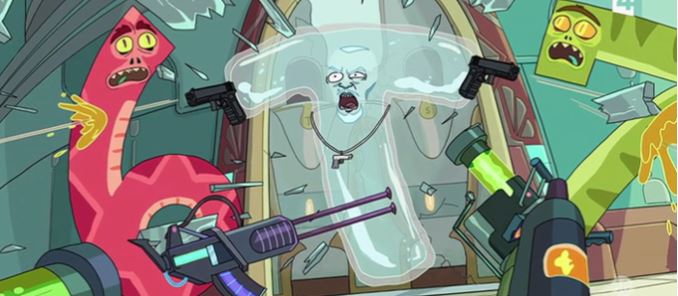 C'est dans l'épisode où Rick et Morty matent la télévision universelle, qui possède un nombre de chaînes supérieur à 12. Et clairement les Ball Fonders sont l'Agence tous risques d'un monde parallèle, mais en plus cool.