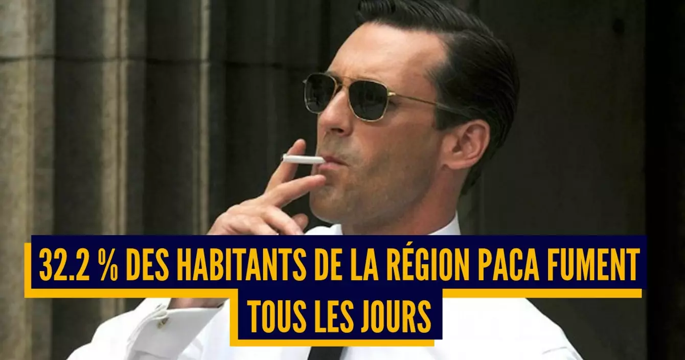 En PACA, ça clope sévère. C'est normal, il fait beau, y'a la mer, y'a le soleil, y'a le pastis, toutes les conditions sont réunies pour cloper. Bon après du coup on a plus de pathologies liées au tabac comme le cancer du poumon, la broncho-pneumopathie, des maladies respiratoires etc. Mais bon. Y'a le soleil quoi.