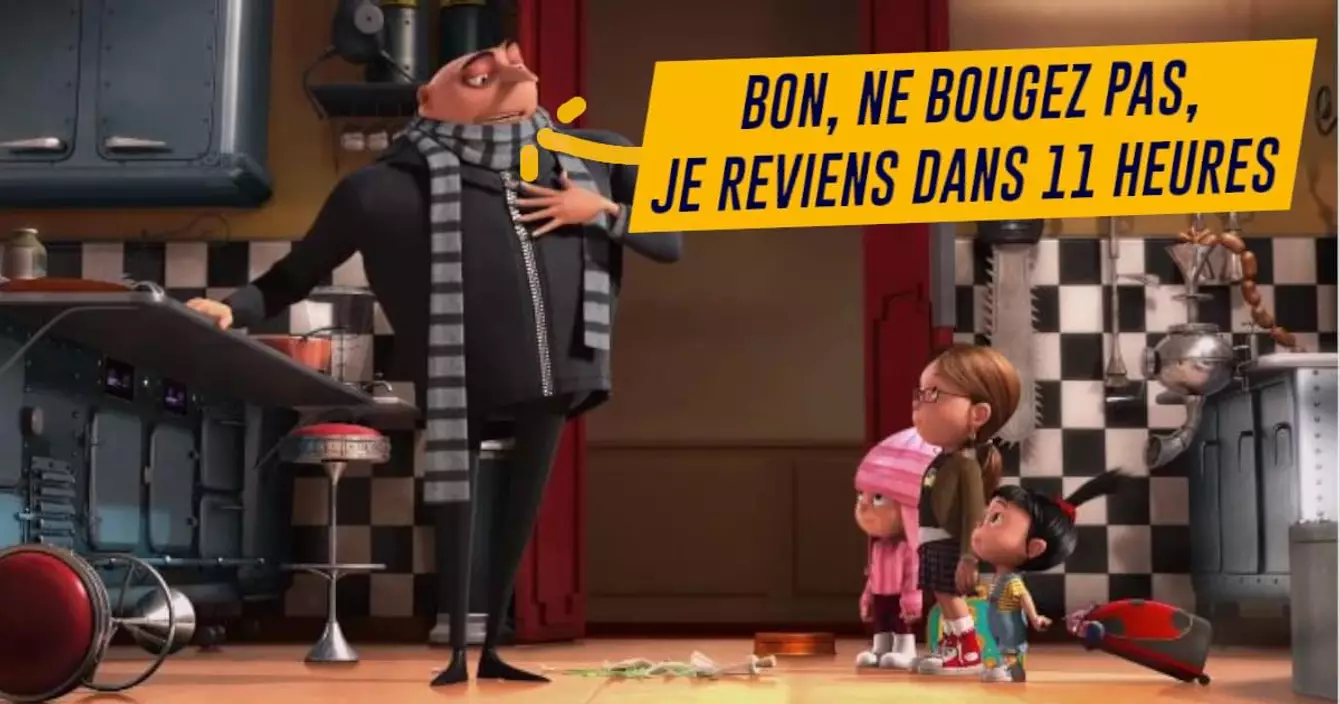 Bon, ne bougez pas, je reviens dans 11 heures. (Gru)