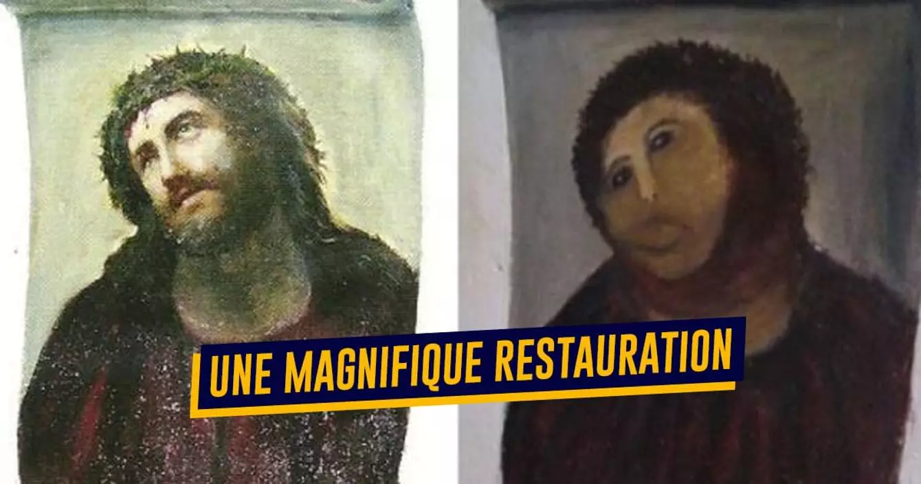 Ce truc est aussi connu que le loup blanc, même si, après restauration, Jésus ressemble plus à un ours brun qu'à un loup blanc. C'est à une peintre amatrice de 80 ans qu'on doit cet enfer, qui devrait faire l'objet d'une restauration post-restauration.