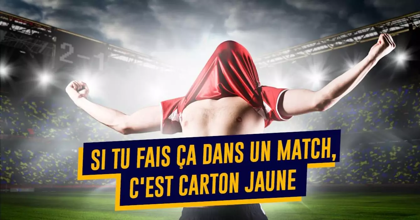 Dans le règlement du foot, un joueur peut être sanctionné s'il célèbre son but de manière excessive, par exemple en retirant son maillot pour le mettre sur la tête. Le but d'une telle interdiction, c'est d'une part d'éviter de perdre trop de temps, ce qu'on peut comprendre, mais aussi d'éviter d'énerver les supporters adverses. Traduction : quand un joueur est trop content d'avoir marqué un but et le célèbre en retirant son maillot, les supporters adverses sont tout colère et commencent à devenir violents. Mais les gars, vous avez quel âge en fait ?