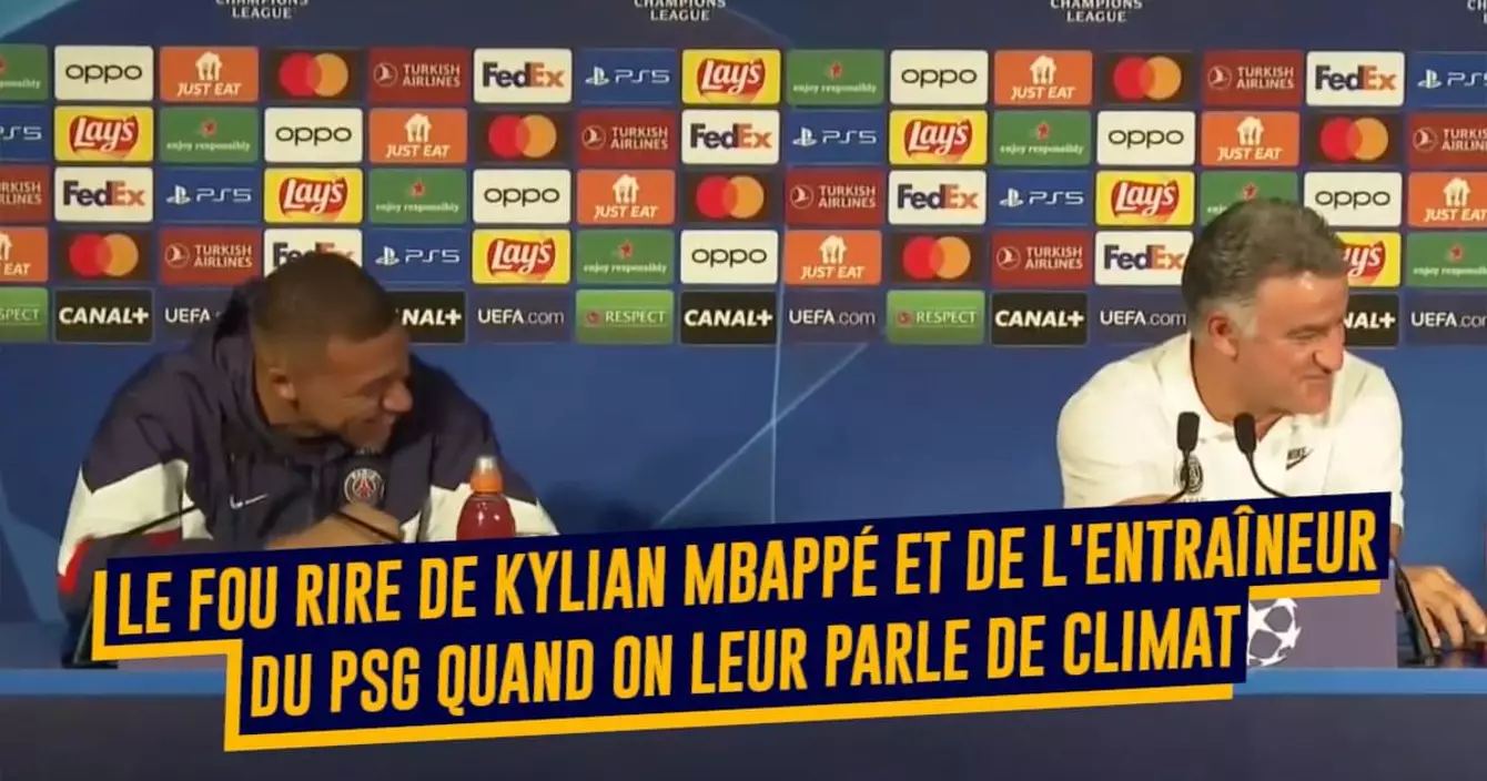 Le fou rire de MBappé et de l'entraîneur du PSG quand on leur évoque l'idée de se déplacer en train plutôt qu'en avion